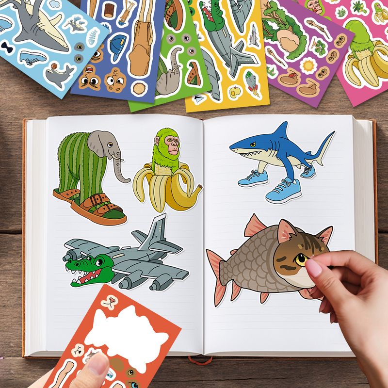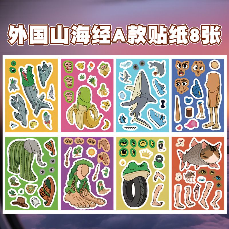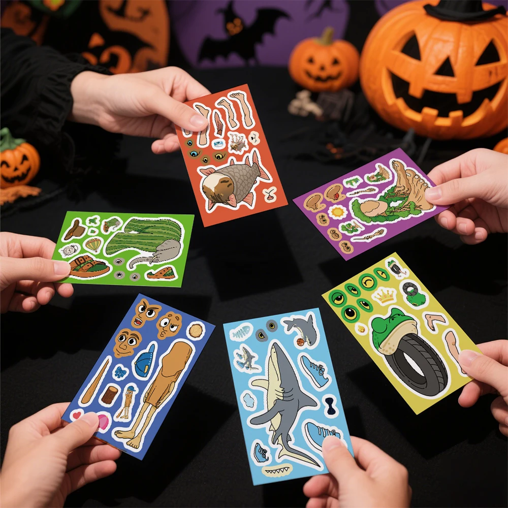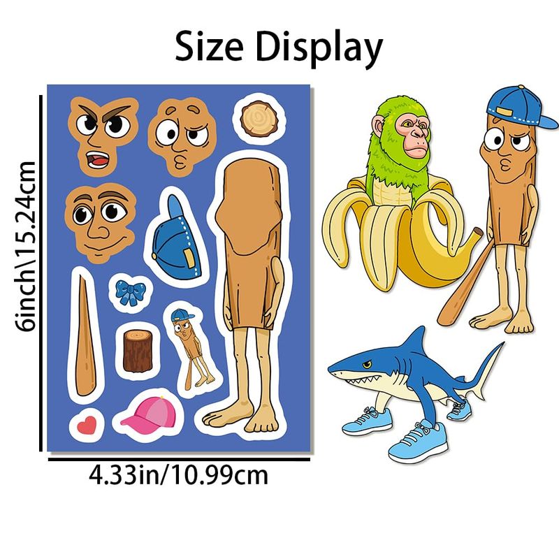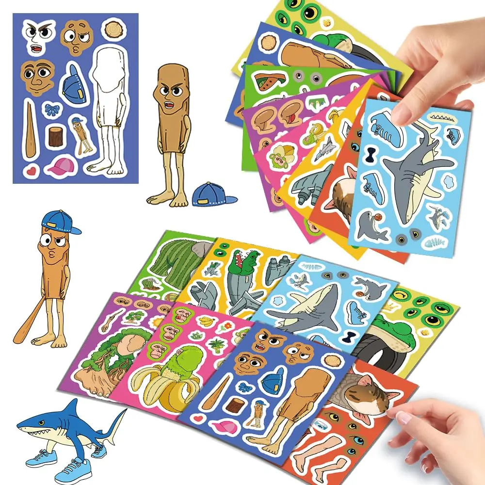 8 Sheets Tralalero Tralala Stickers Italian Brainrot Stickers Children DIY Make a Face Puzzle Funny Assemble Jigsaw Sticker