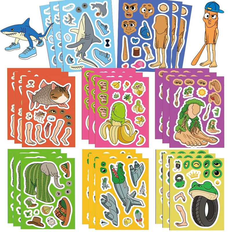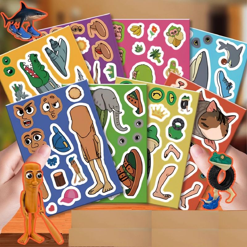 8 Sheets Tralalero Tralala Stickers Italian Brainrot Stickers Children DIY Make a Face Puzzle Funny Assemble Jigsaw Sticker