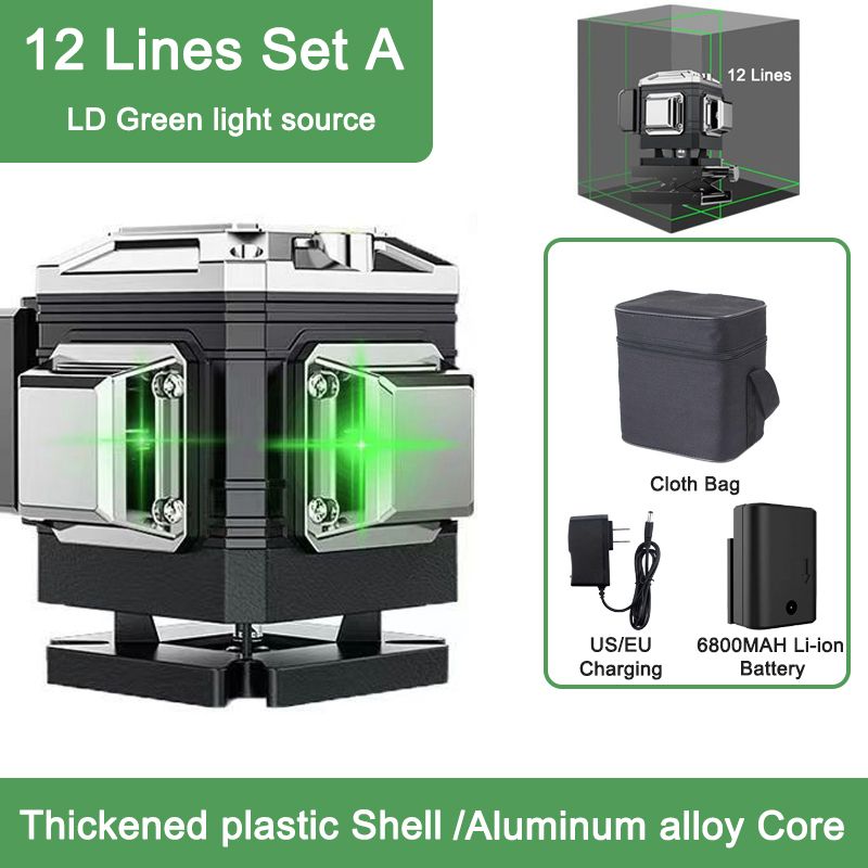 8/12/16 Lines 3D/4D Laser Level Green Line Self-Leveling 360° Horizontal & Vertical Cross Powerful Green Beam Laser Level Tools