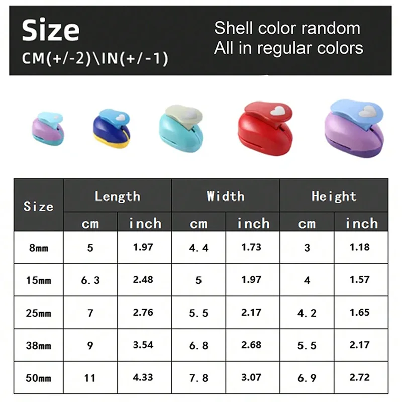 8/15/25/38/50mm Random Color Heart Punch DIY Embossing Punches Scrapbooking Machine Paper Cutting Hole Punch Rounder Cutter
