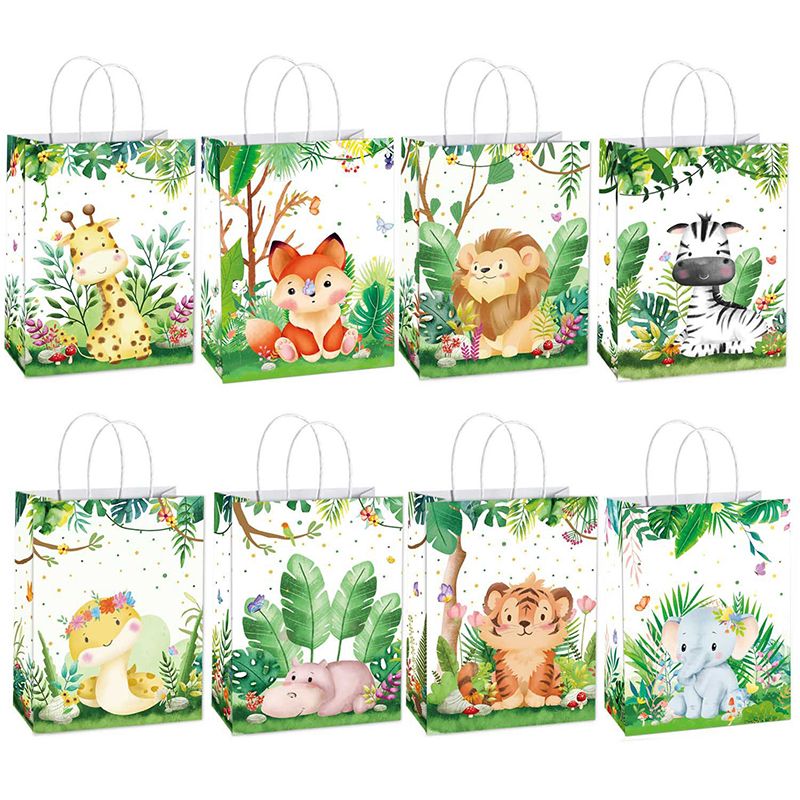 8/16pcs Jungle Animals Candy Gift Bags Biscuit Packing Bag Wild One Safari Gift Bags Kids Birthday Party Decoration Supplies