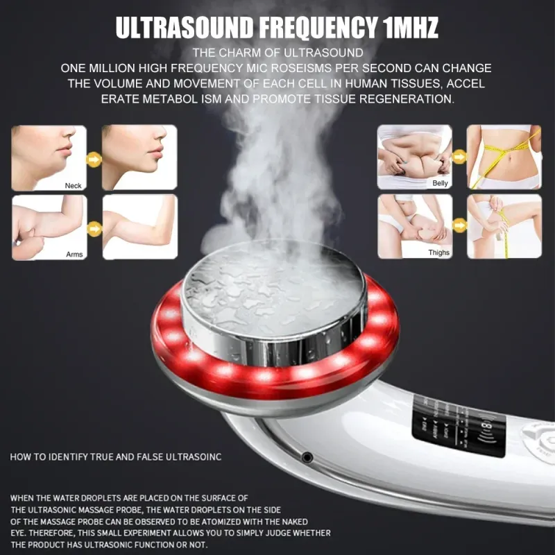 WHEN THE WATER DROPLETS ARE PL ACED ON THE SURFACE OF THE ULT RASONIC MASSAGE PROBE, THE WATER DROPLETS ON THE SIDE OF THE MASSAGE PROBE CAN BE OBSERVED TO BE ATOMIZED WITH THE NAKED EYE. THEREFORE, THIS SMALL EXPE RIMENT ALLOWS You TO SIMPLY JUDGE WHETHER THE PRODUCT HAS ULTRASONIC FUNCTION OR NOT.