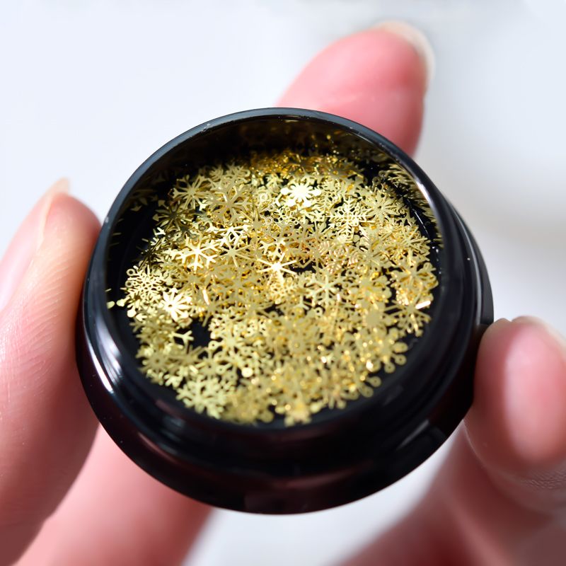 80-90pcs/jar Hollow Out Gold Nail Glitter Sequin Snow Flakes 8/10mm Mixed Metal Snowflakes 2023 DIY Snow Flake Manicure Decor