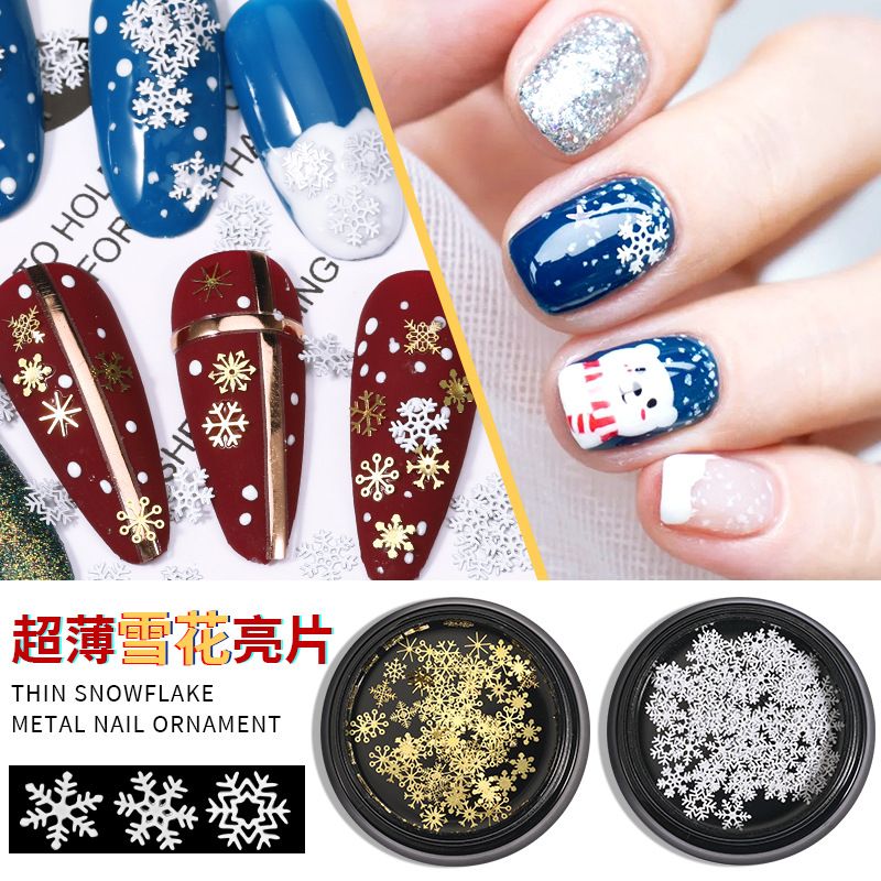 80-90pcs/jar Hollow Out Gold Nail Glitter Sequin Snow Flakes 8/10mm Mixed Metal Snowflakes 2023 DIY Snow Flake Manicure Decor