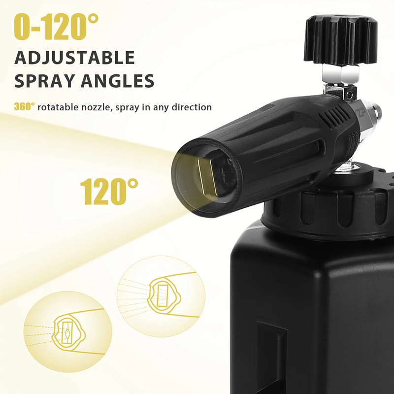80° Adjustable Nozzle High-Pressure Foam Cannon Metal ABS, 1/4" Quick Connect Car Wash Foam Sprayer No Battery