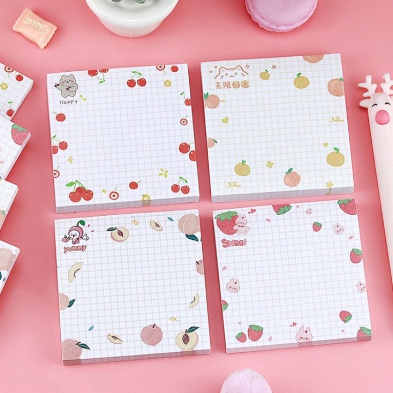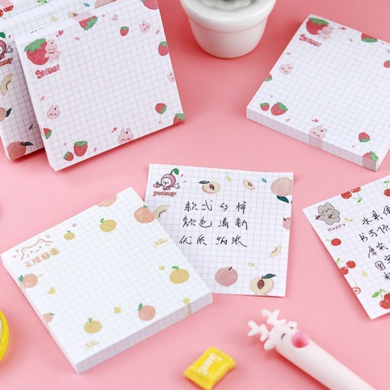 80 Pages/pack Kawaii Animals and Fruits Sticky Notes Memo Pad To Do List Cute Journaling Supplies Planner Sticker Deco