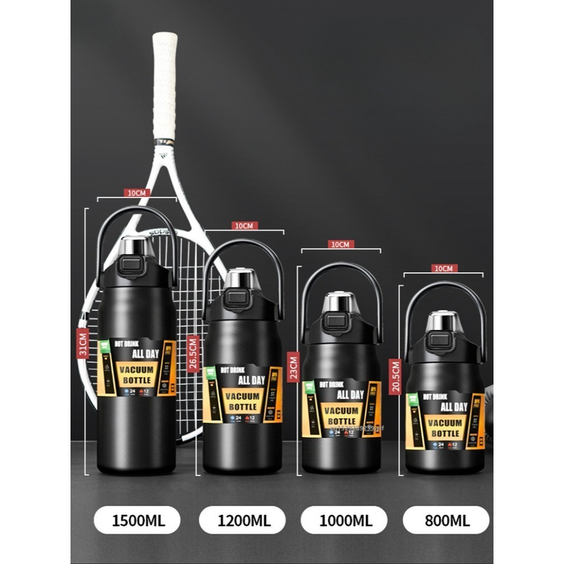 800/1000/1200/1500ML 304 Stainless Steel Thermos with Straw Thermal Mug Cup Sports Vacuum Flasks Cold and Hot Water Bottle