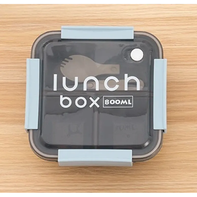 800/1100ml Plastics Compartmented Lunch Box Microwave Safe Bento Box with Cutlery Food Storage for Student Worker Tableware