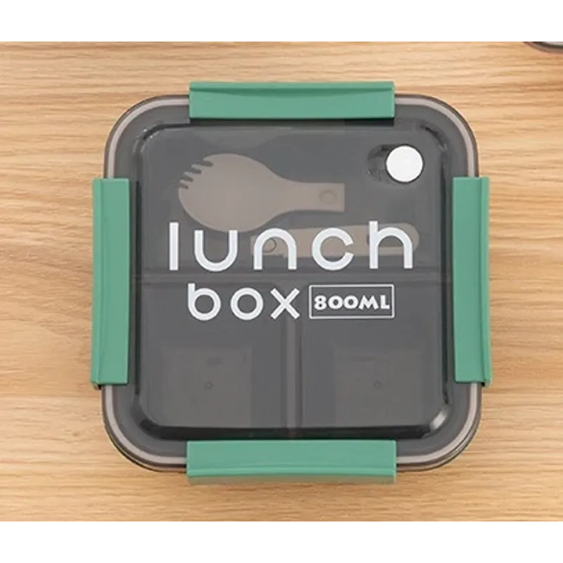 800/1100ml Plastics Compartmented Lunch Box Microwave Safe Bento Box with Cutlery Food Storage for Student Worker Tableware