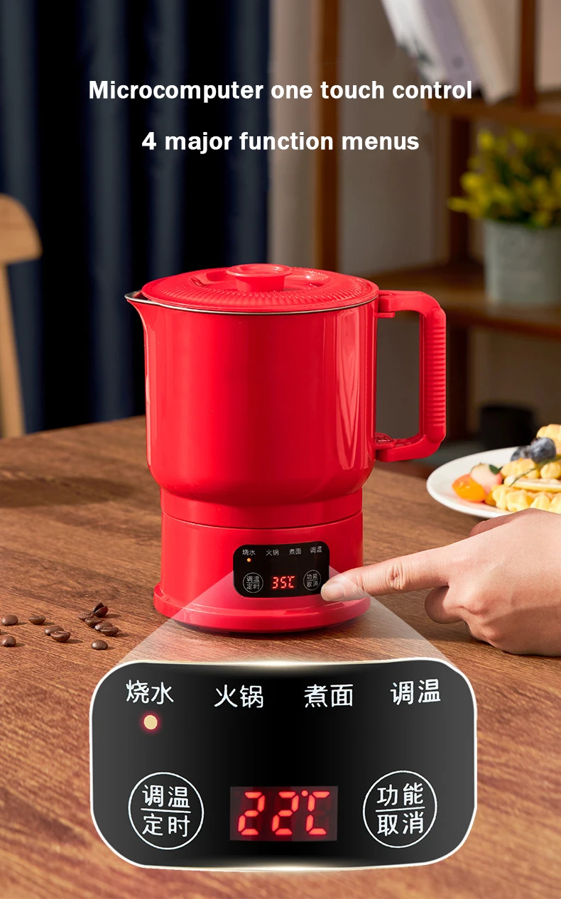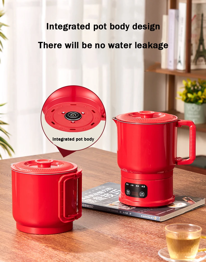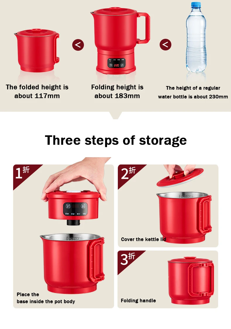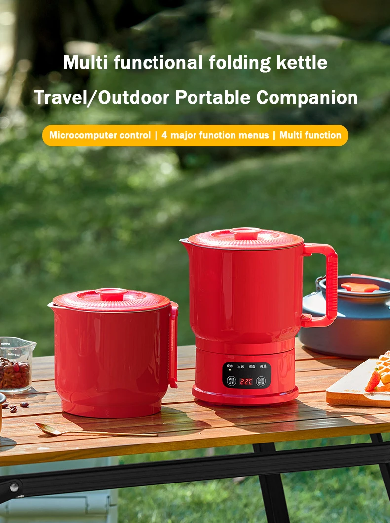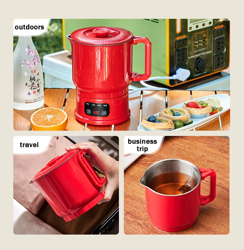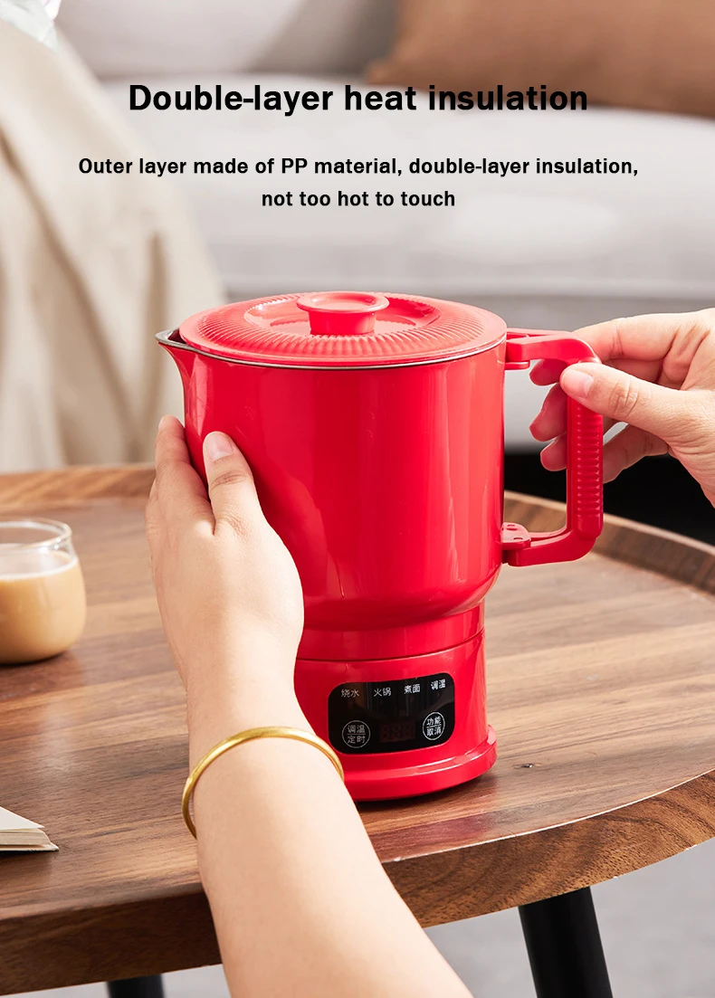 800ml Folding Portable Electric Kettle Stainless Steel Travel Noodles Cooking Pot Stew Skillet Hotpot Insulated Hot Water Boiler