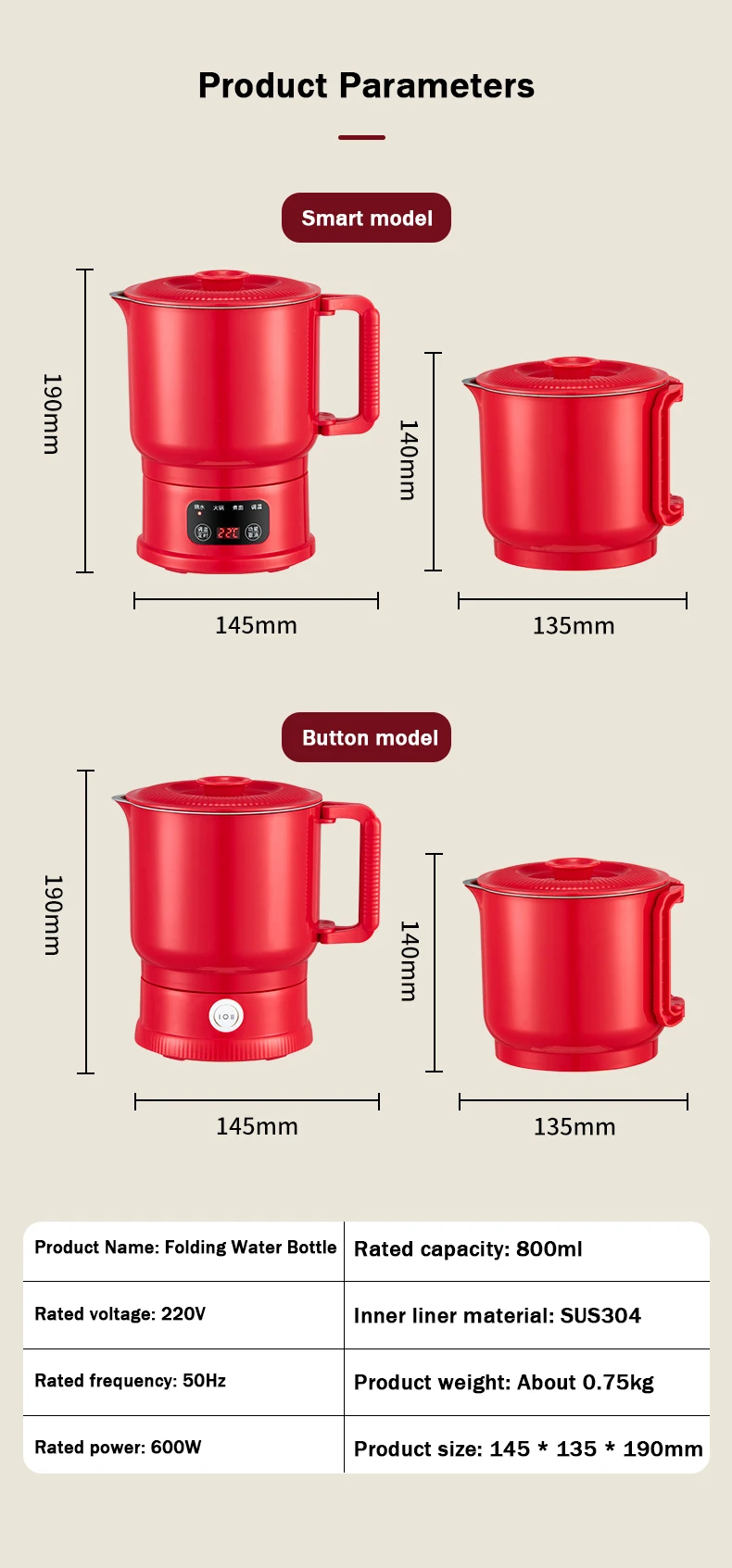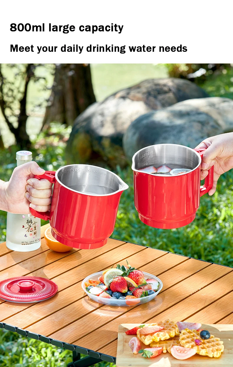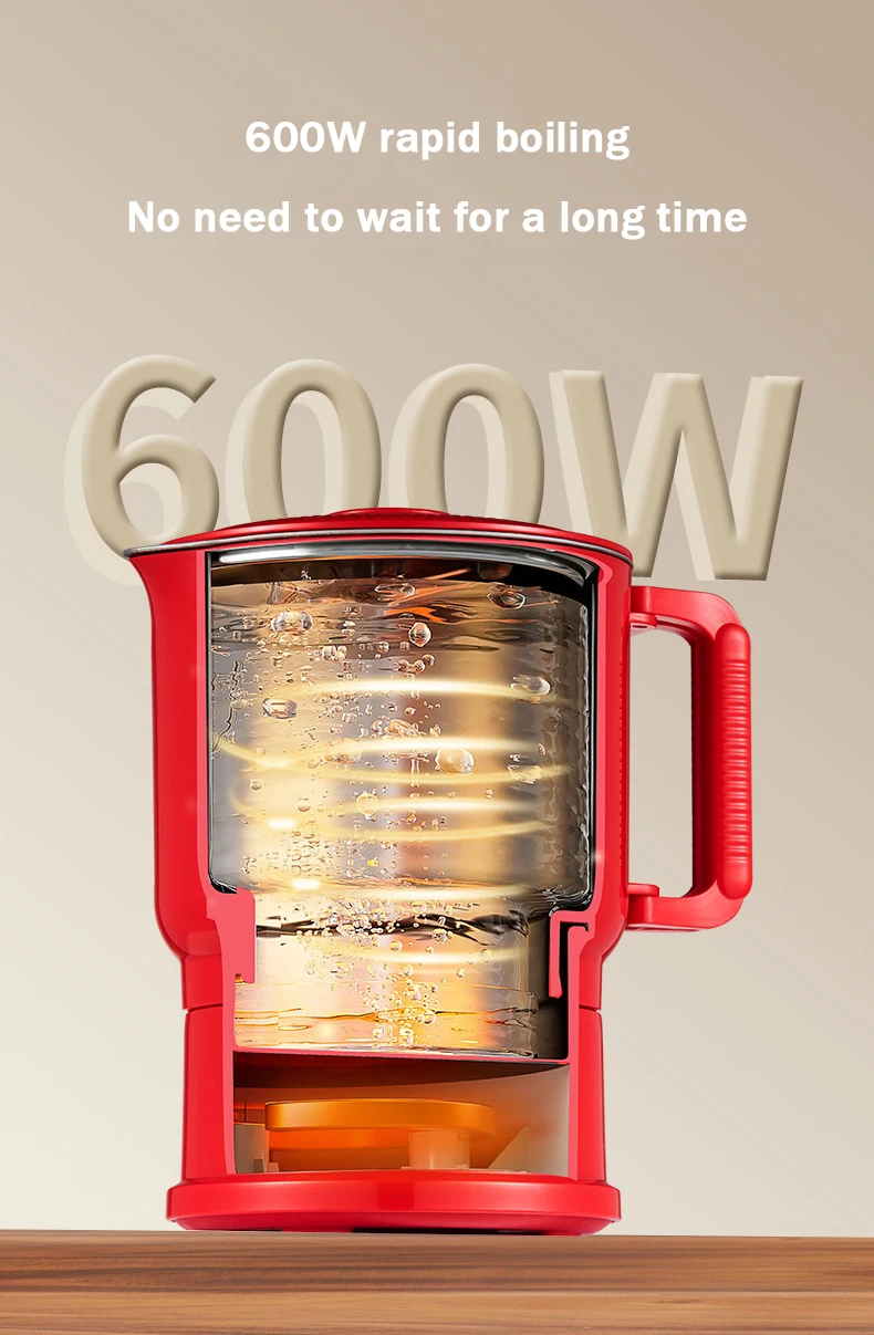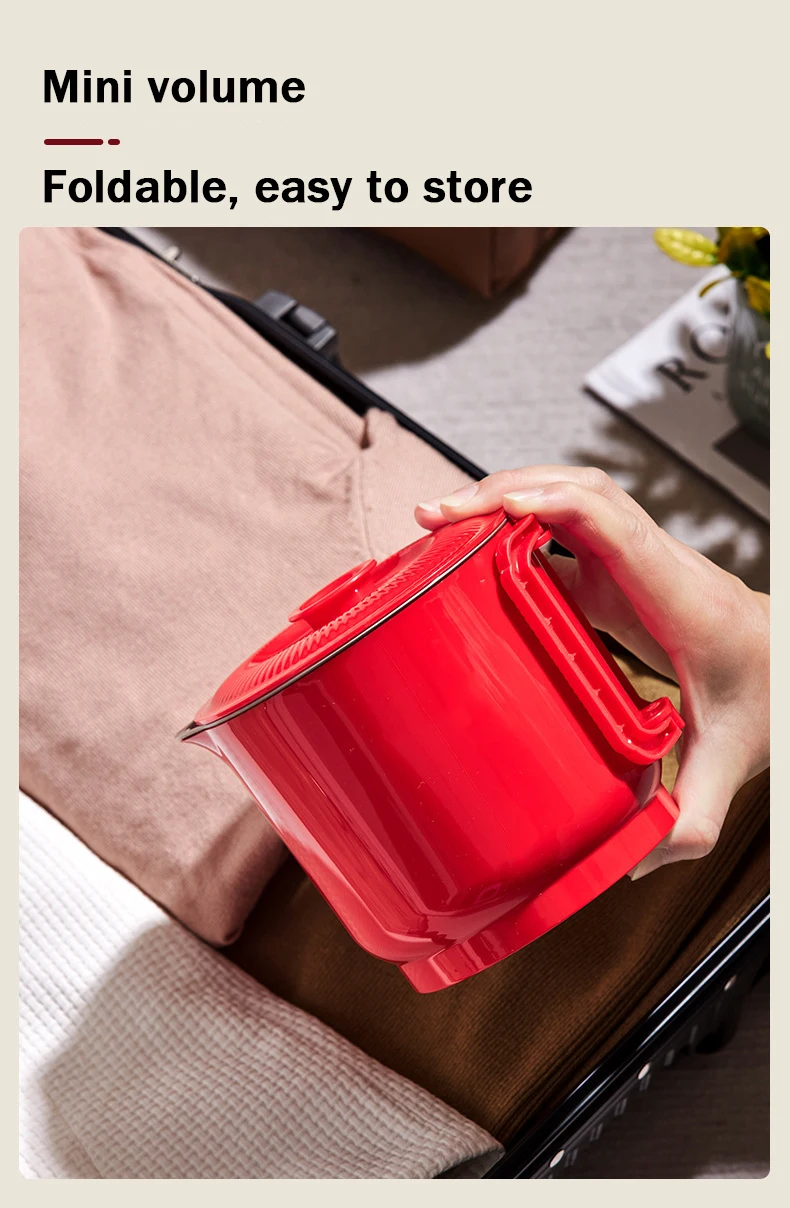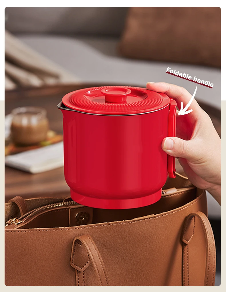 800ml Folding Portable Electric Kettle Stainless Steel Travel Noodles Cooking Pot Stew Skillet Hotpot Insulated Hot Water Boiler