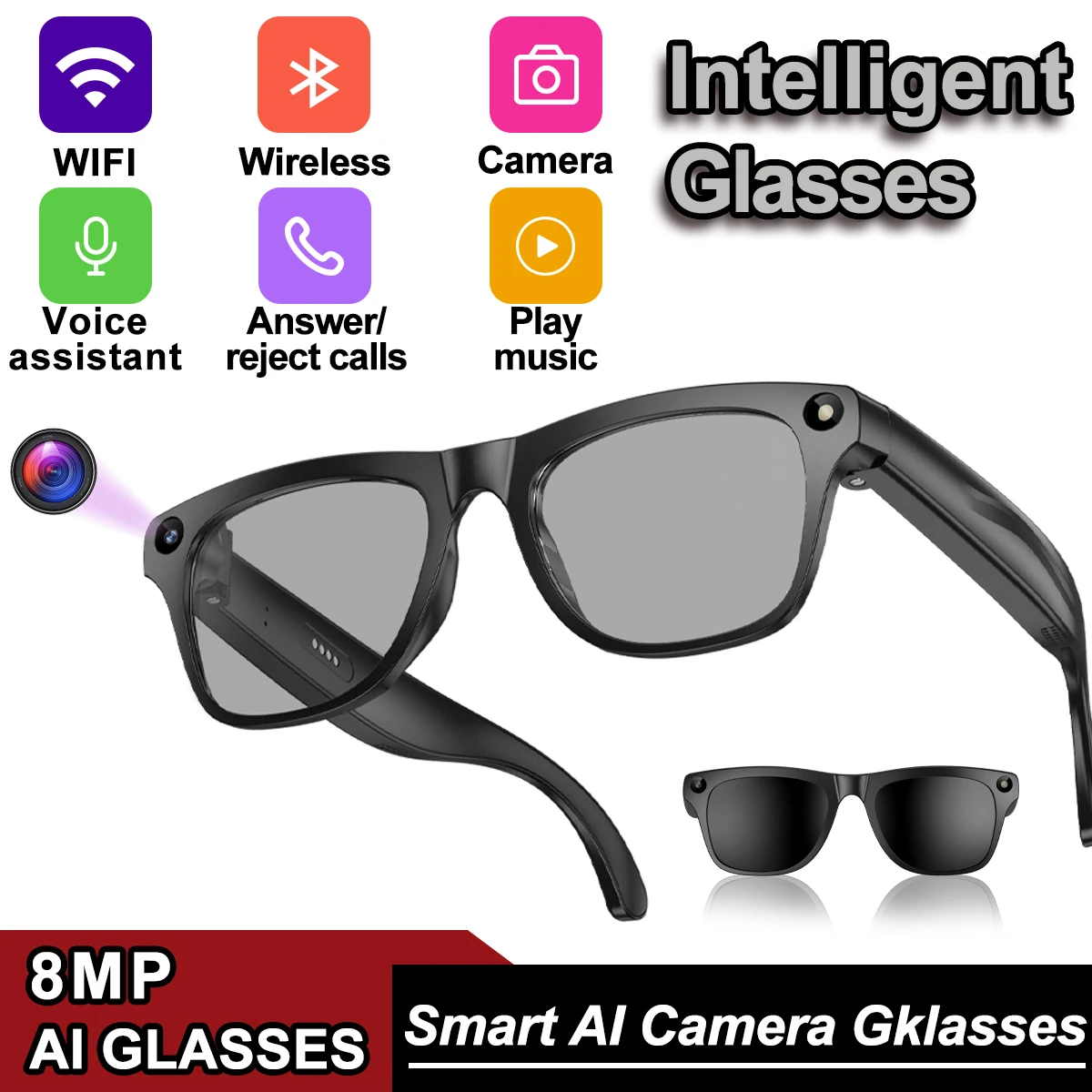 800W HD AI Smart Bluetooth Glasses HD Shooting Waterproof Camera Photo Video Voice Call Translation AI Smart Cam Glasses