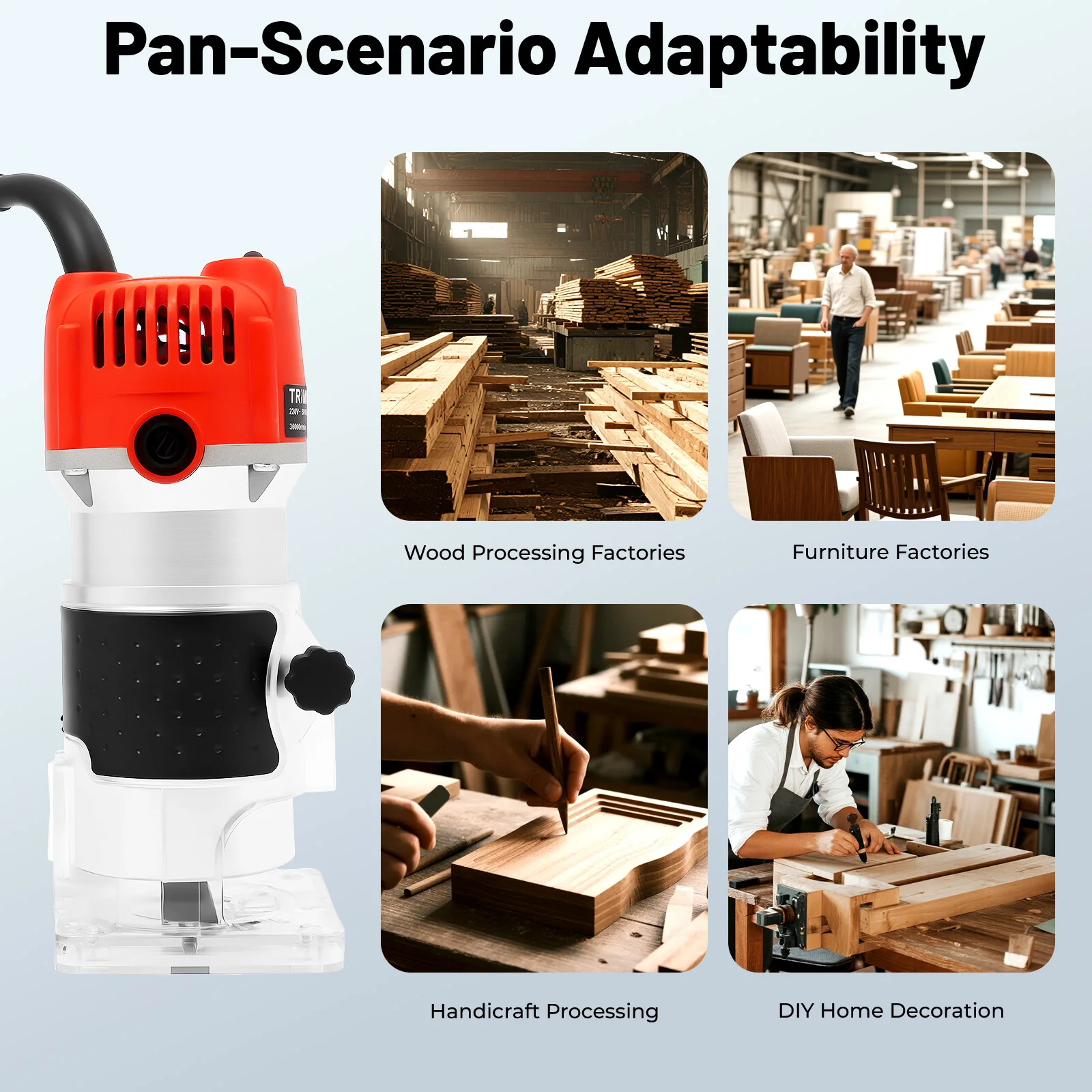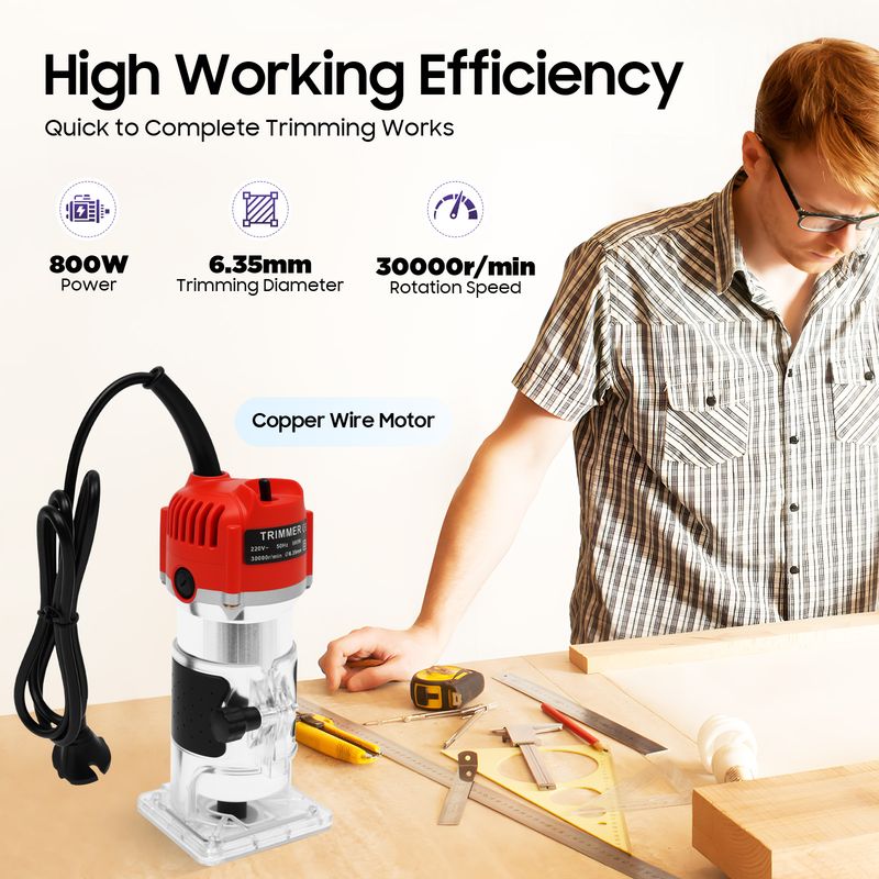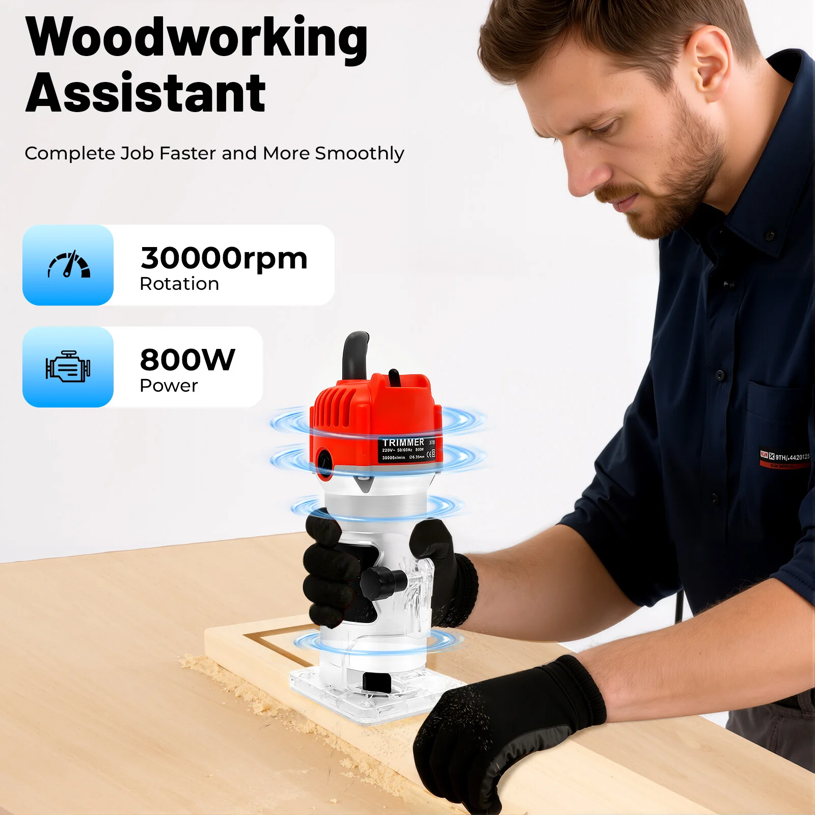 800W Woodworking Trimmer 30000RPM,Compact Electric Handheld Wood Router Carpenter Power Tool for DIY Wood Grooving Edge Trimming