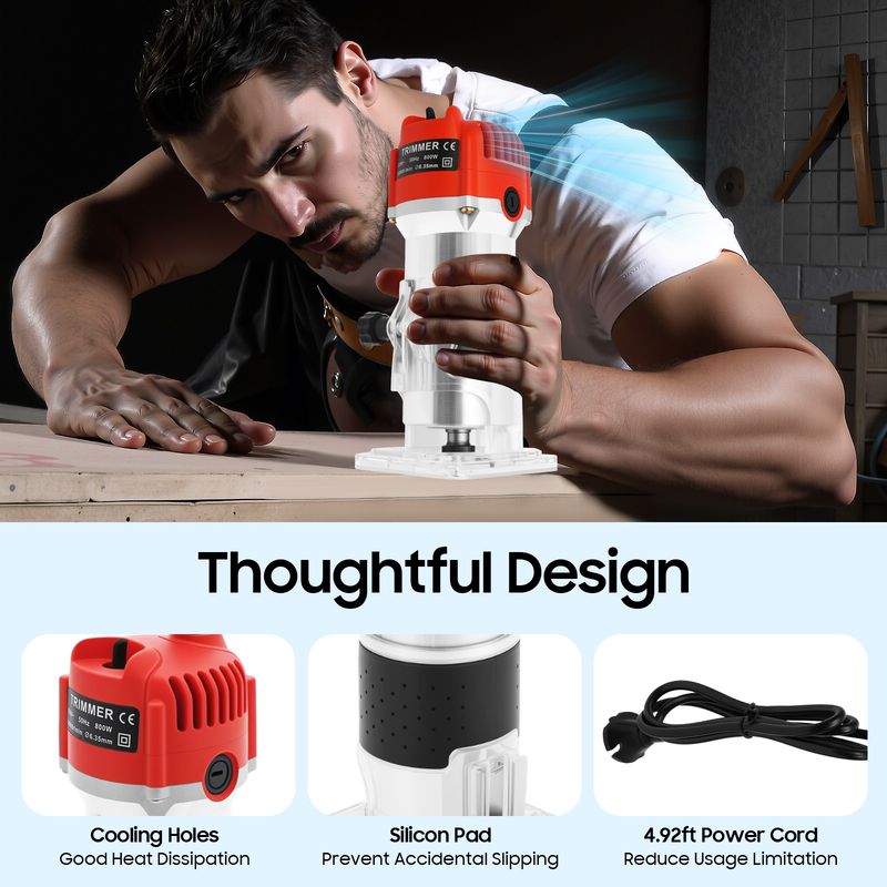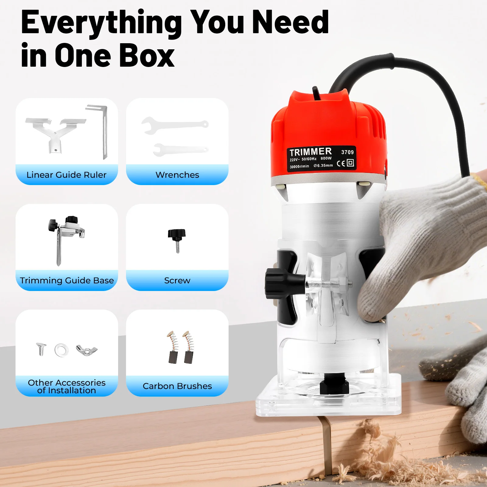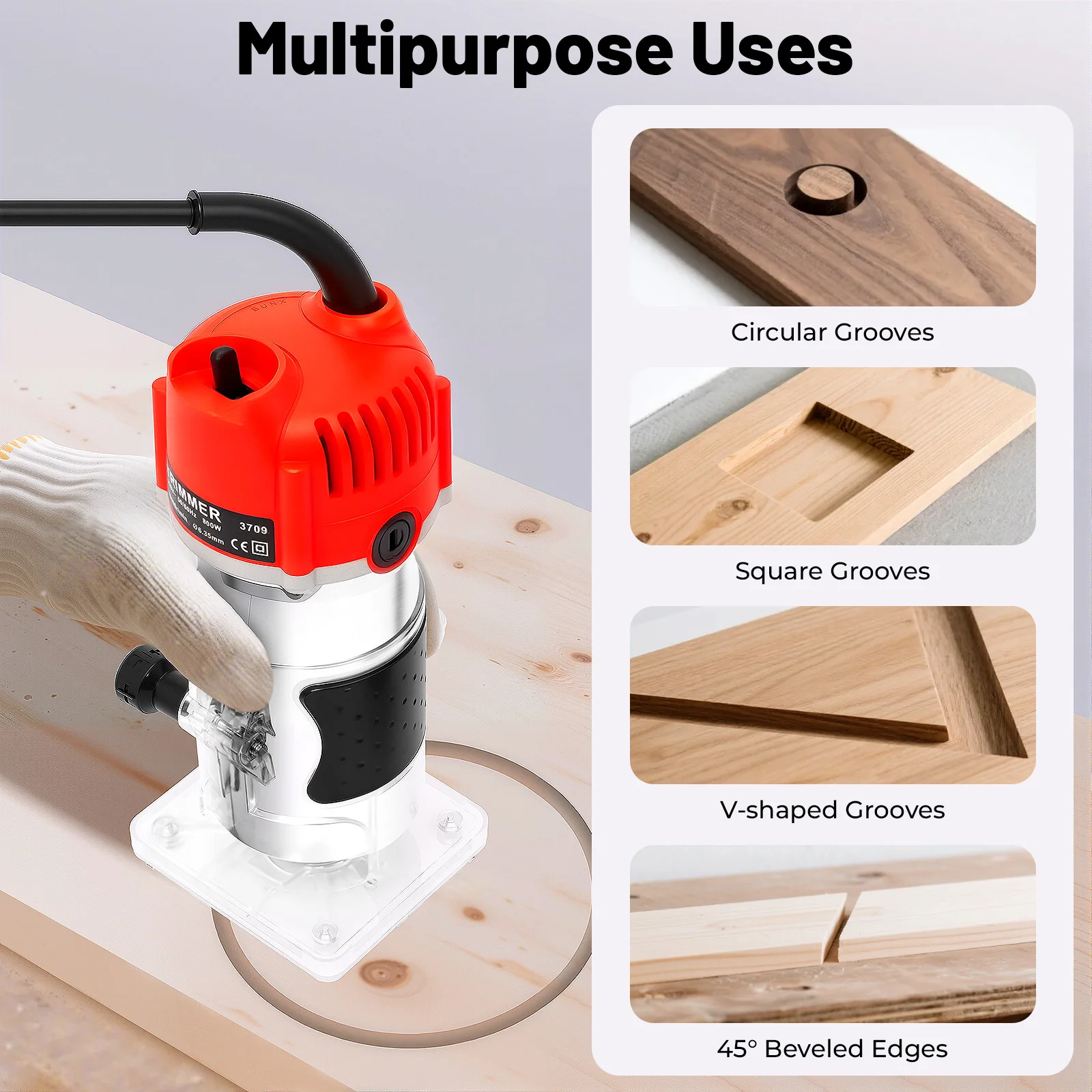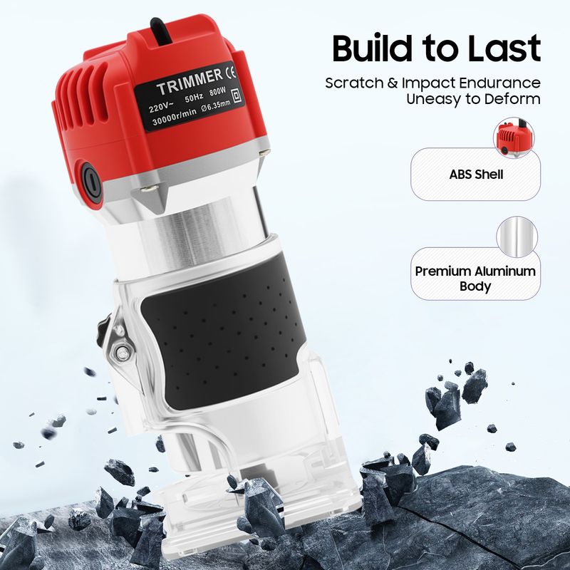 800W Woodworking Trimmer 30000RPM,Compact Electric Handheld Wood Router Carpenter Power Tool for DIY Wood Grooving Edge Trimming