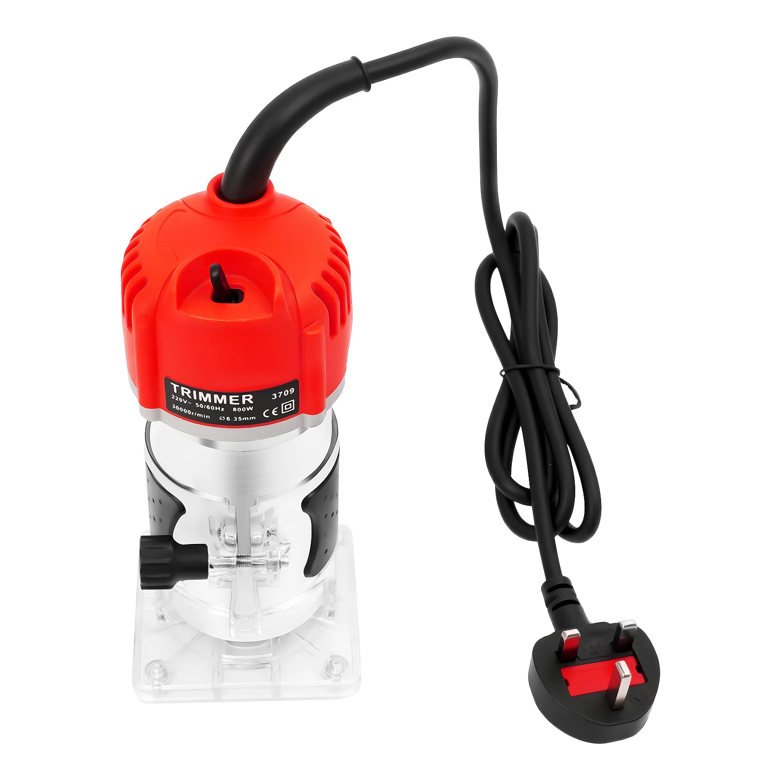 800W 220V Electric Edge Trimming Router, 6.35mm Trimming Wood Router Electric Trimmer for Wood Grooving Edge Trimming DIY Crafts Furniture Processing (EU Plug/UK Plug)