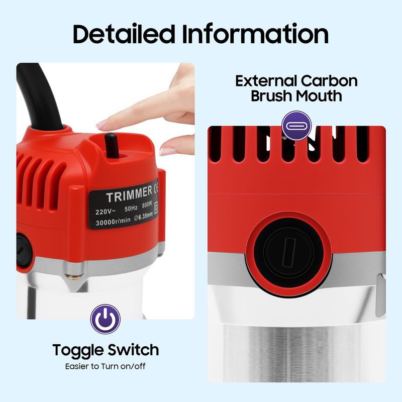 High Efficiency: High-efficiency copper wire motor with power up to 800W and speed up to 30,000RPM provides you with a smooth and quick trimming experience, greatly improving work efficiency.