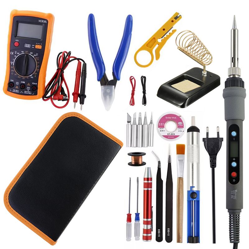 80W Soldering Iron LCD Digital Display Temperature Adjustable 220V EU Electric Solder Iron Set Welding Rework Station Repair Kit