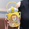 820ml Kids Water Sippy Cup Cartoon Water Bottle with Straw and Handle Portable Drinking Bottle Cup for Children Student School