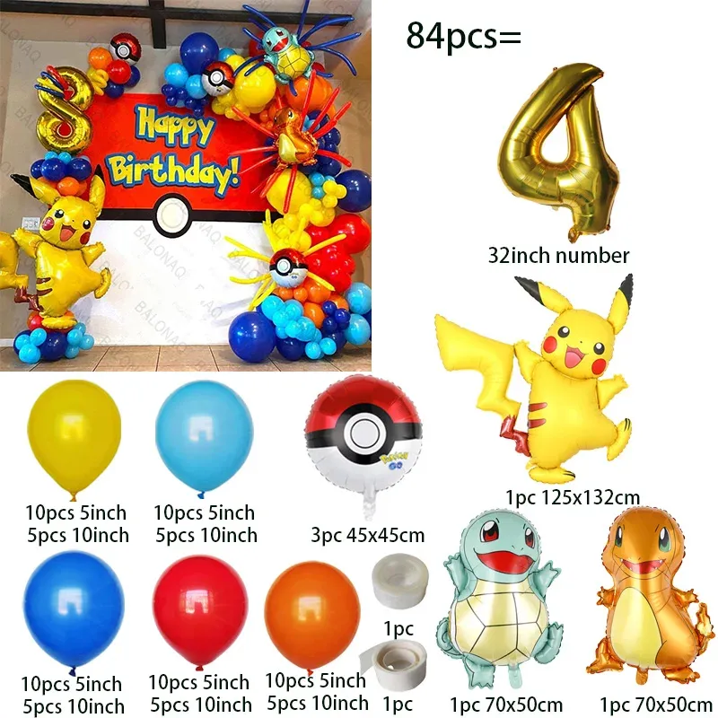 84pcs Pokemon Party Balloons Garland Arch Kit Dream Theme Birthday Party Decor Supplies Pikachu Squirtle Bulbasaur Pocket Ball