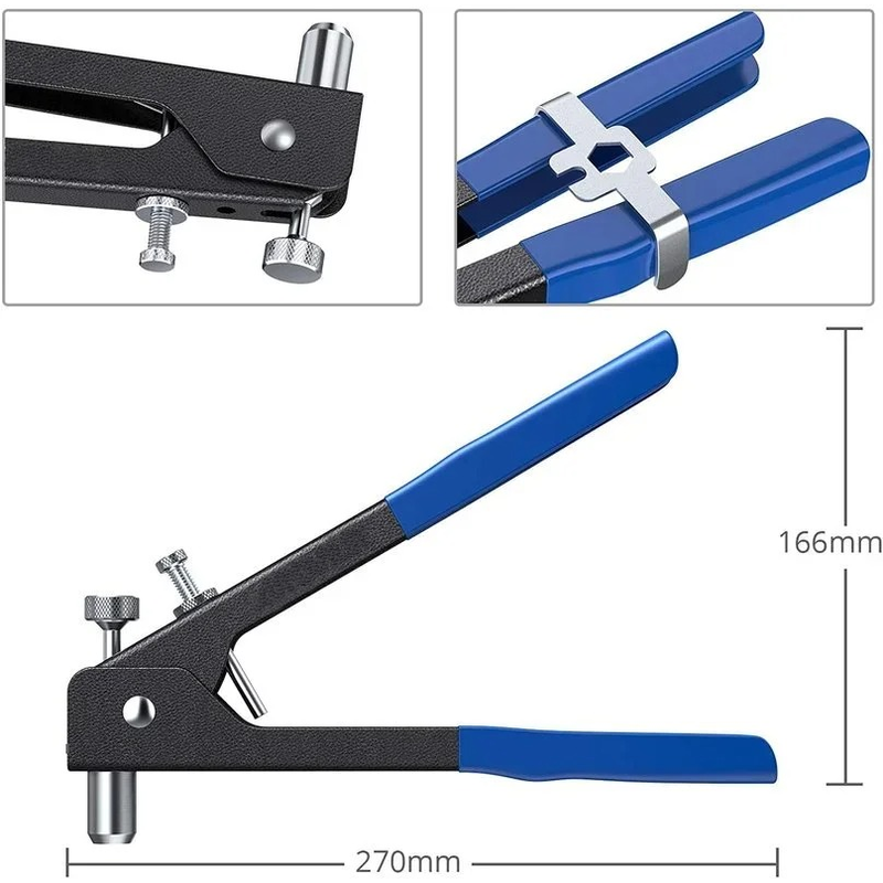 High Quality Material: The Plier Style Rivet Nut Gun has Drop Forged Carbon Steel Body and Chromium-Vanadium Steel made Rivet Head, along with PVC made anti-skid Handle Cover.