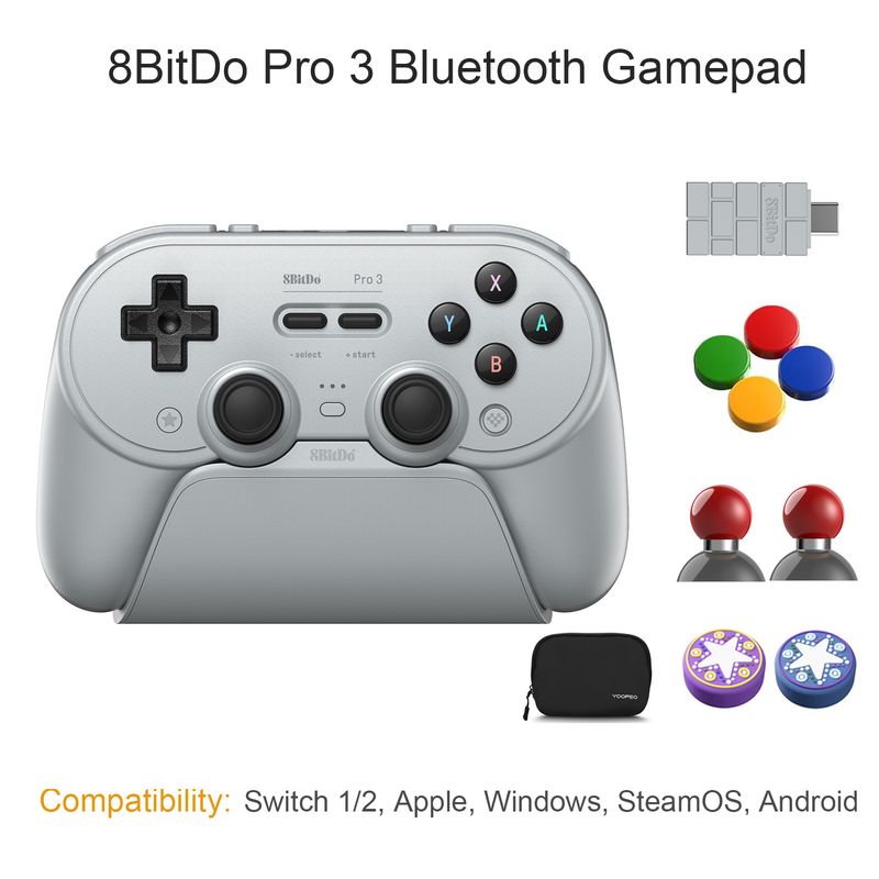 8BitDo Pro 3 Bluetooth Gamepad Wireless Gaming Controller for Switch 1/2, Windows, Apple, with TMR Joysticks Swappable Button