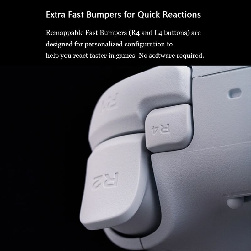 Remappable Fast Bumpers (R4 and L4 buttons) are designed for personalized configuration to help you react faster in games. No software required.