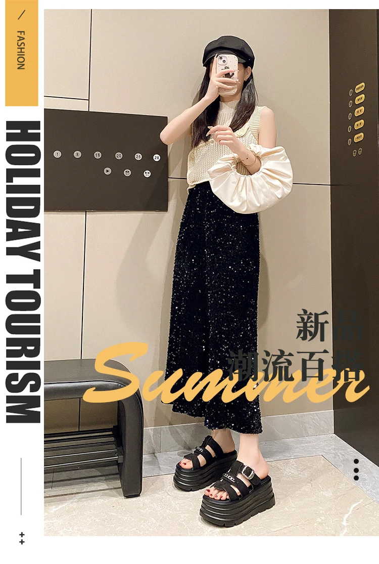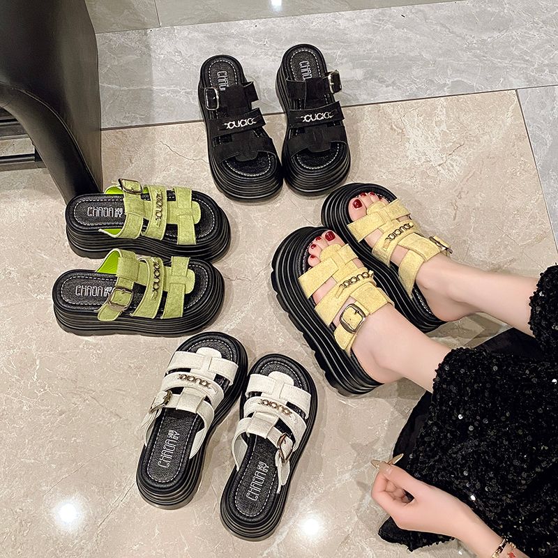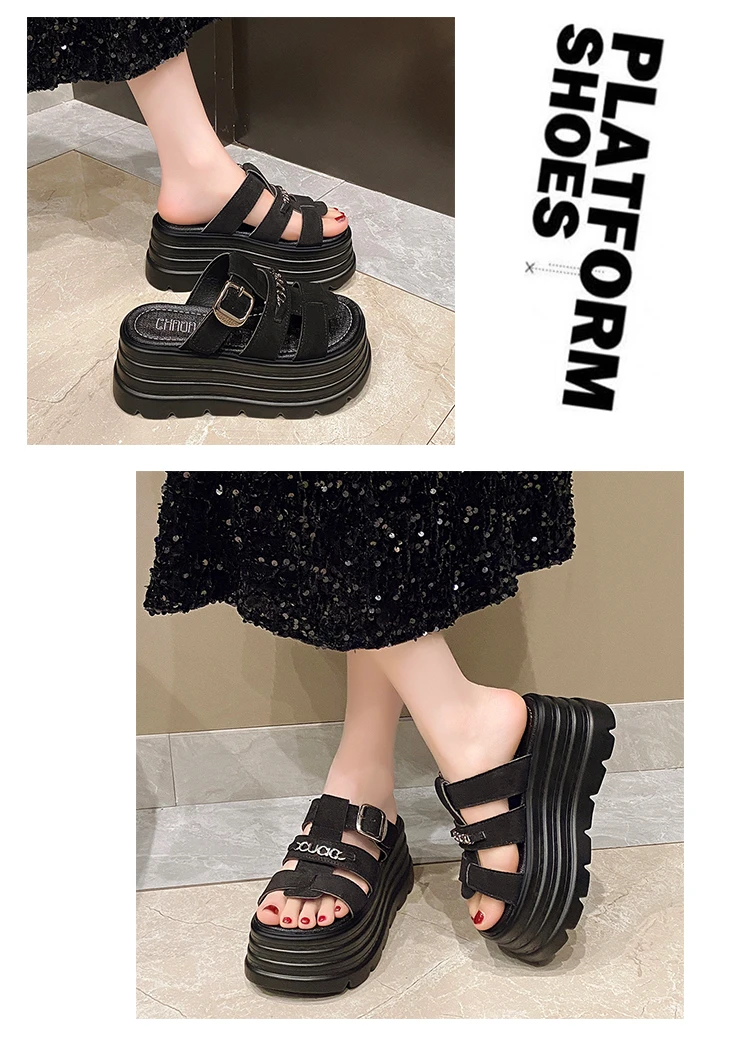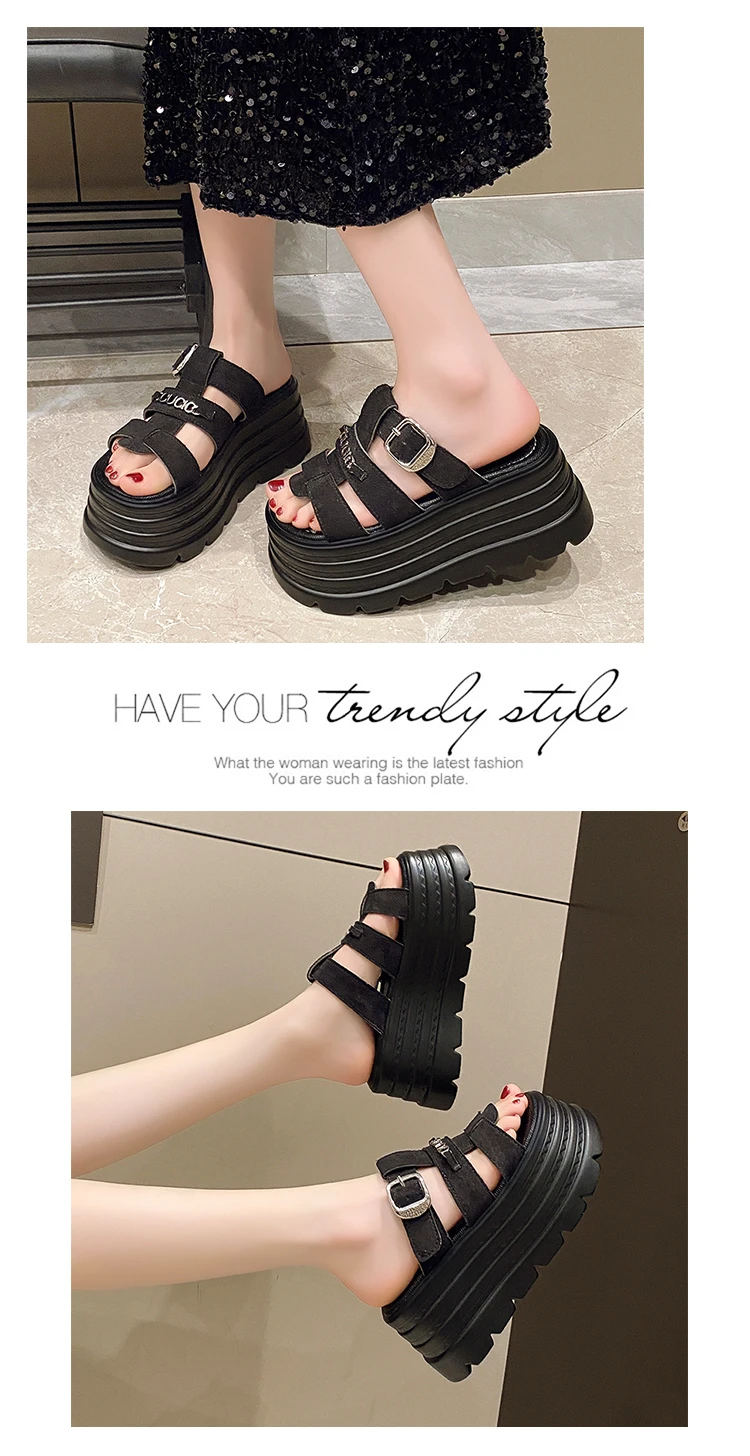 8CM Summer High Platform Women Sandals Wedge Heels Slippers Fashion New Beach Outside Chunky Sandals Comfort Casual Slides Woman