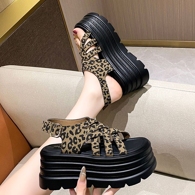 8CM Women High Platform Slippers Leopard print Thick Sandals Woman Chunky Fashion Summer Flats Casual Beach Slides Zapatos Mujer