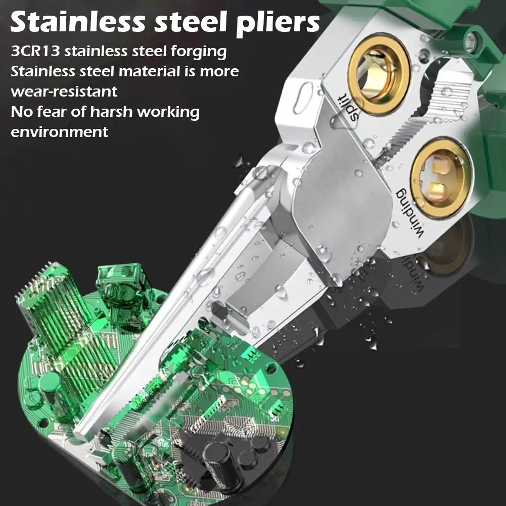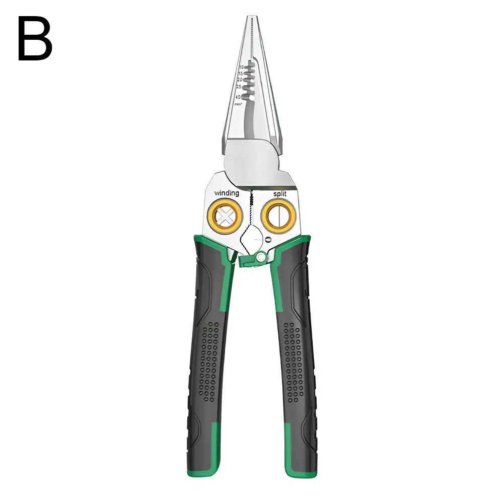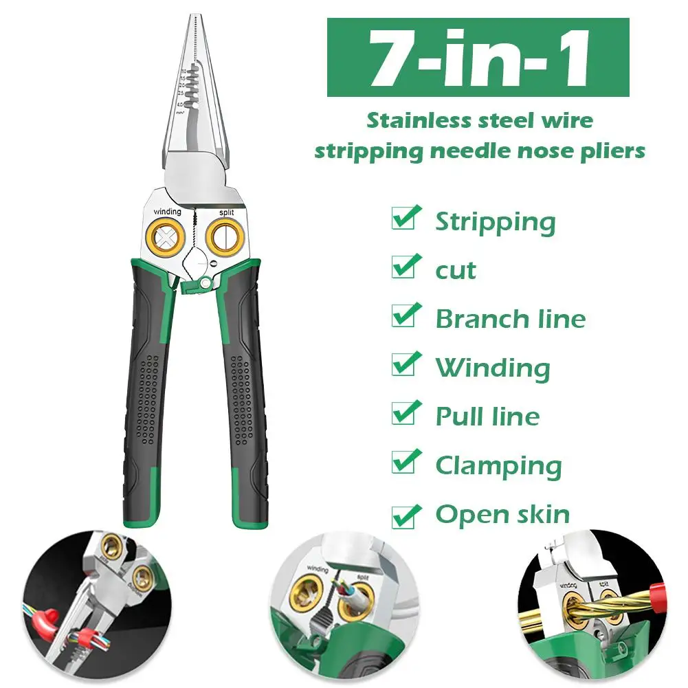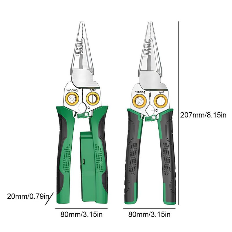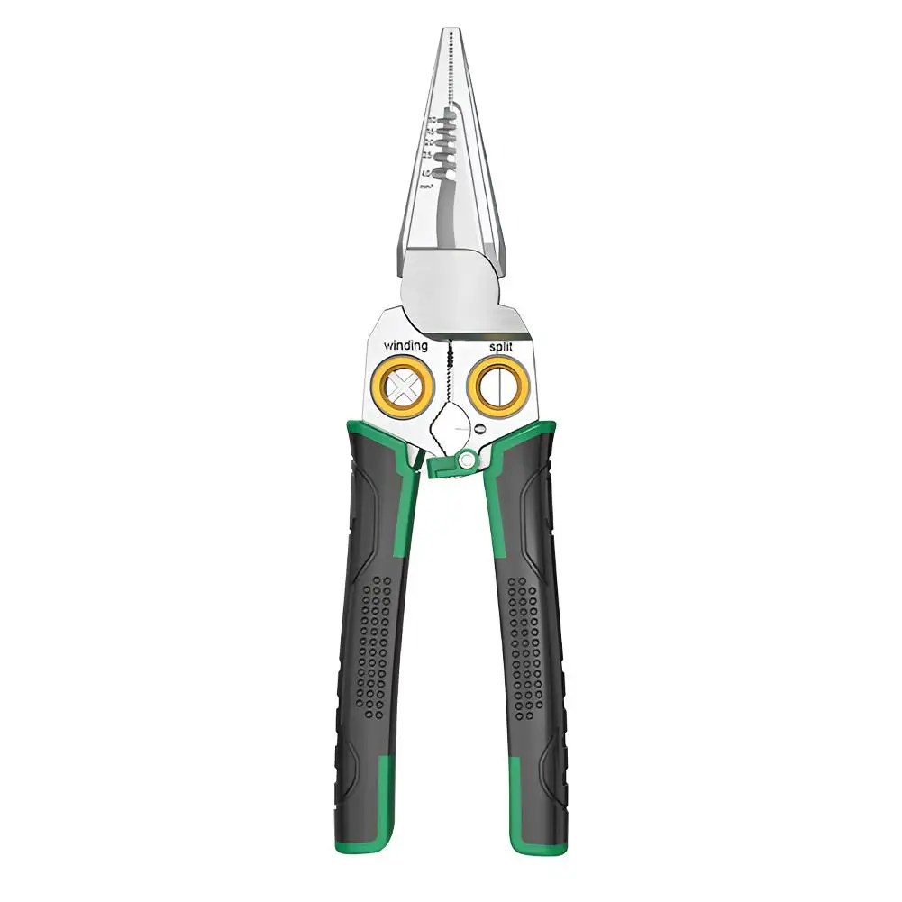 Multi-functional Design: This steel wire stripper integrates multiple tools including cutting, stripping, slicing cables, dividing wires, winding, opening, and pulling cables, suitable for various electrical operations.