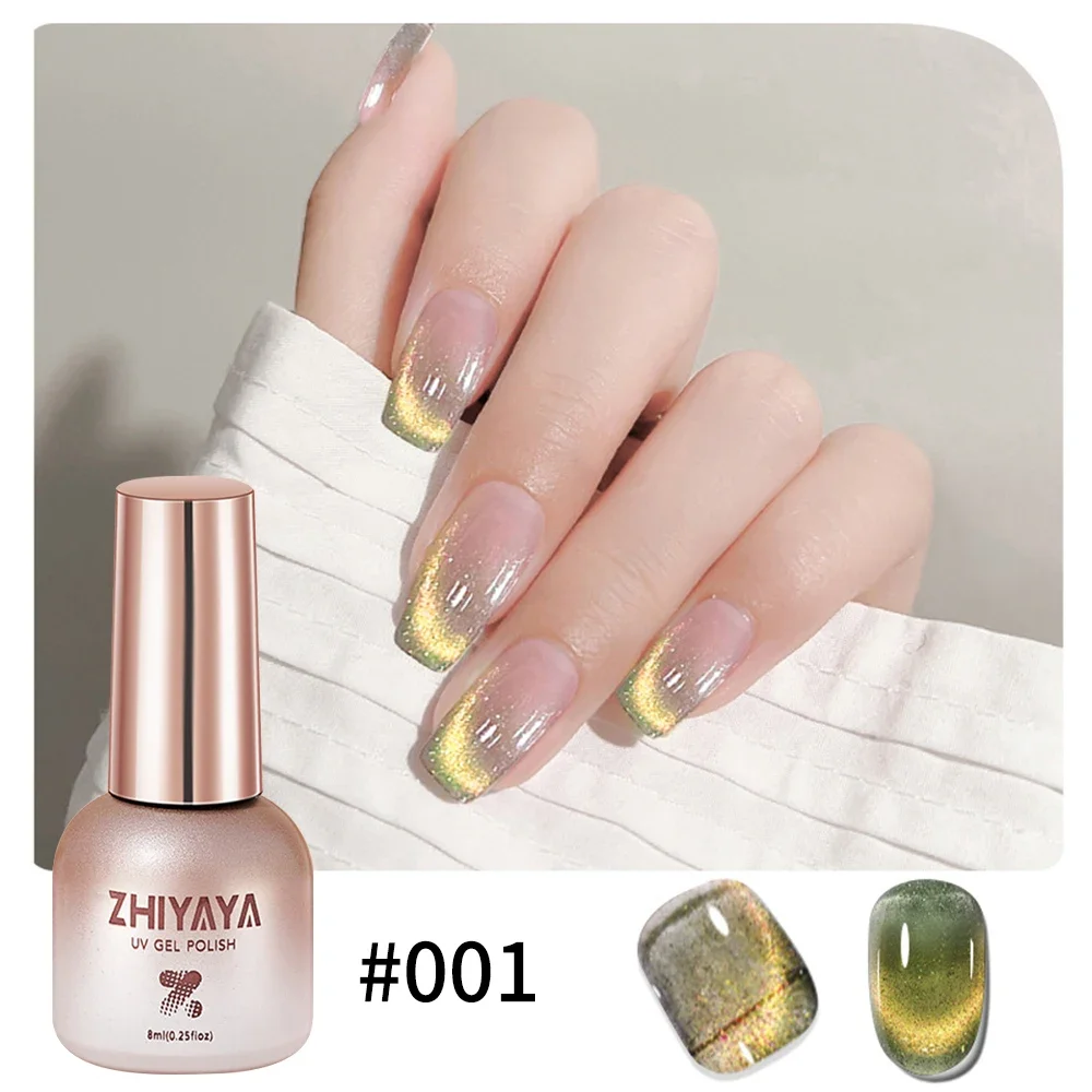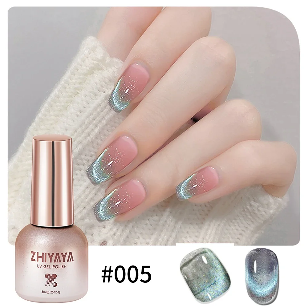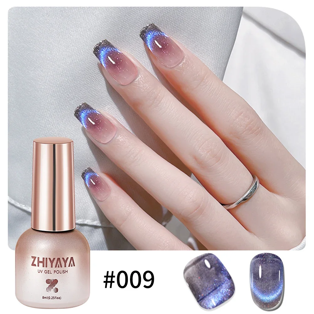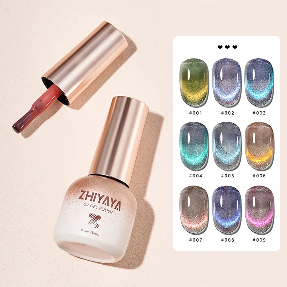 8ml Reflective Magnetic Gel Nail Polish Rainbow Effect Soak Off Gel Semi Permanent Glitter Dynamic Cat Eyes Nail Art UV Gel