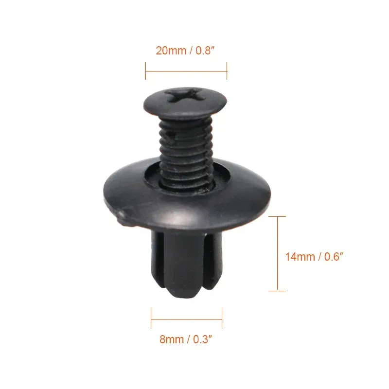 8mm Plastic Rivets Fasteners Screw Car Bumper Fender Black Rivet Car Fastener Clips for Toyota Focus Kia Nissan Yamaha