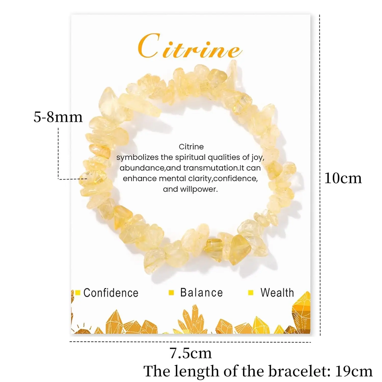8mm Real Raw Crystal Bracelet Yellow Citrine Natural Stone Bracelets Gemstone Bracelets Citrine Jewelry for Women Girls