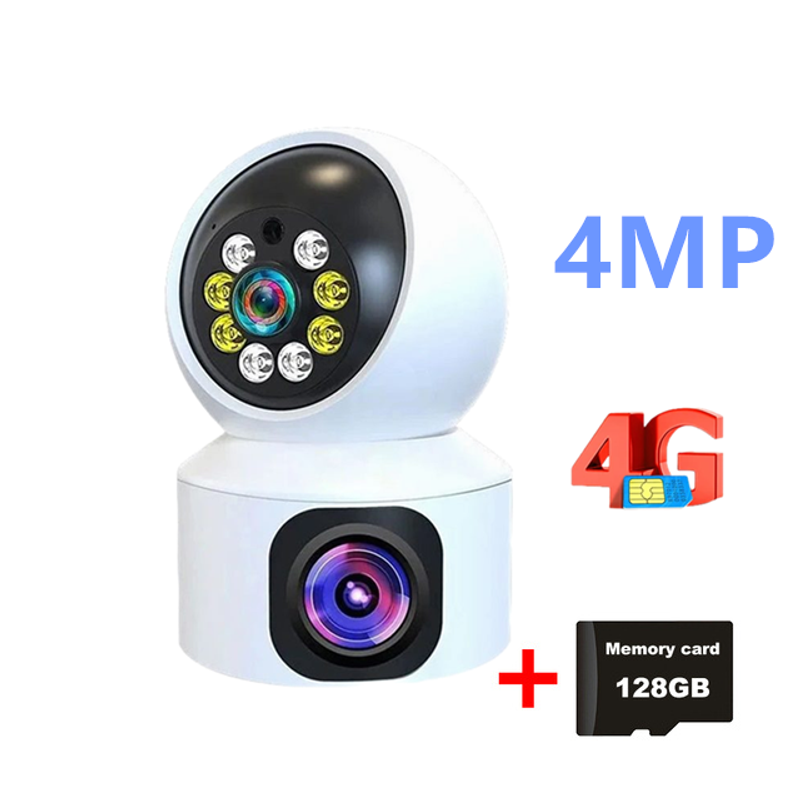 8MP 4K Dual Lens Camera 4G SIM Card Indoor Smart Home Webcam Color Night Vision Security Protection CCTV