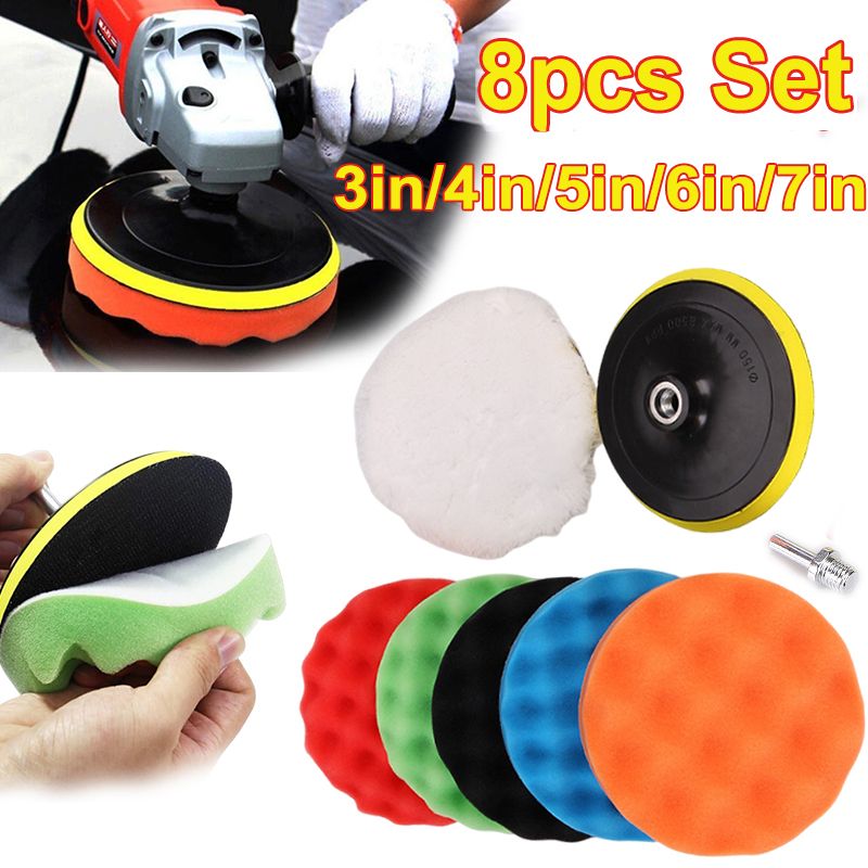 8Pcs Car Polishing Pads Kit 3/4/5/6/7 Inch Foam Sponge Buffer Pad Buffing Disc Set Polisher Polishing Machine Wax Pads 125/150mm