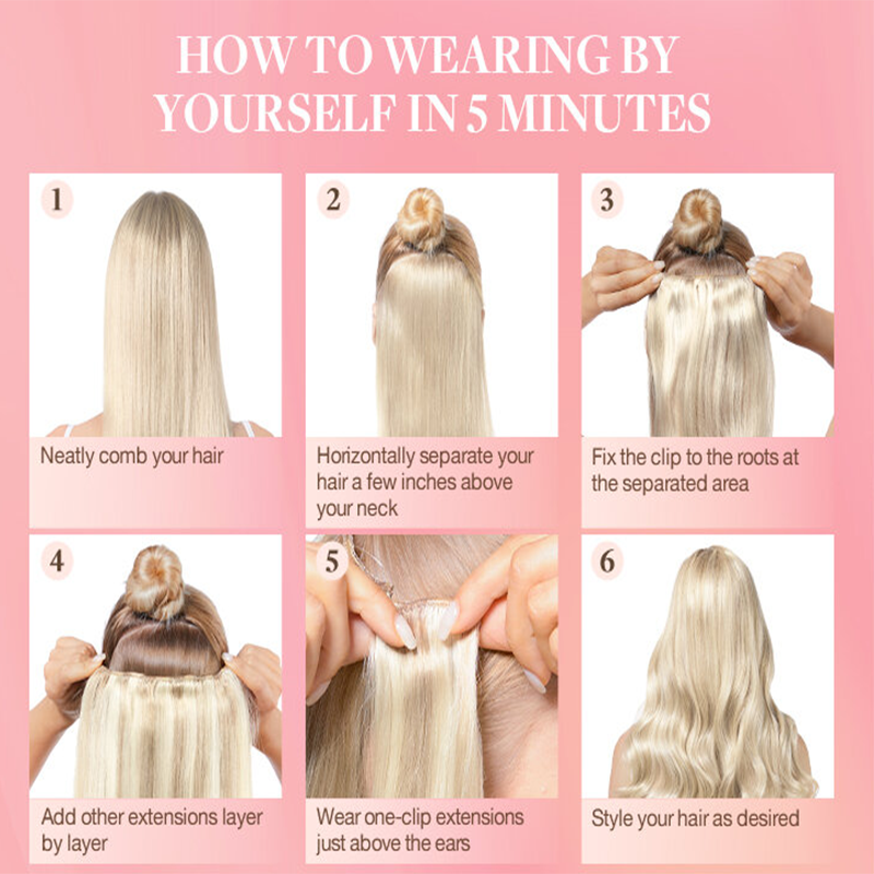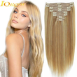 8Pcs Clip In Hair Extensions 100% Human Hair P8/613 Color Brown Highlight Blonde For Women Daily Use Real Hair Natural Black 4#
