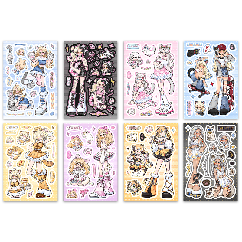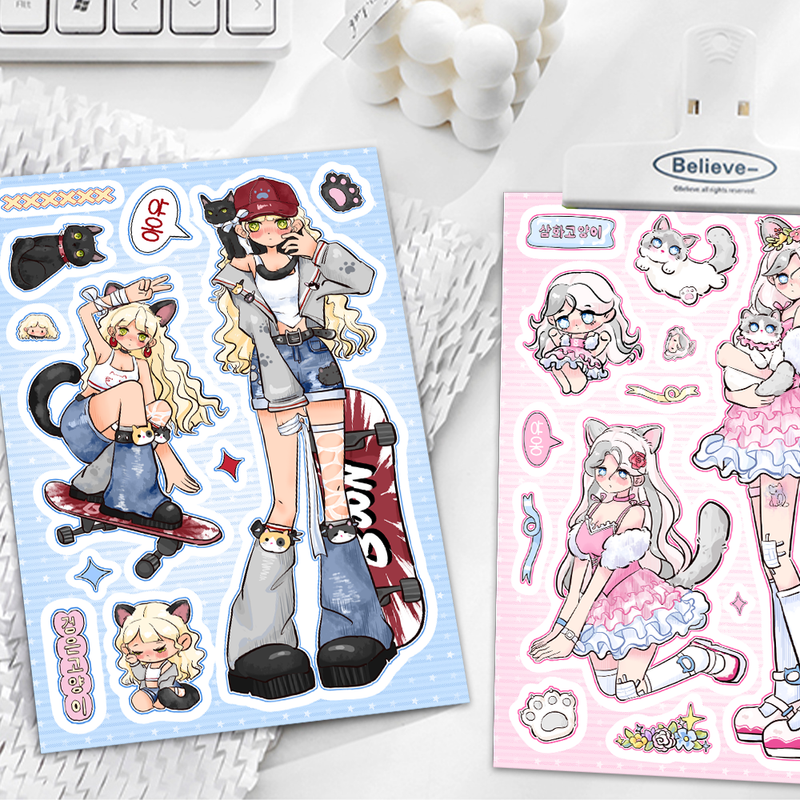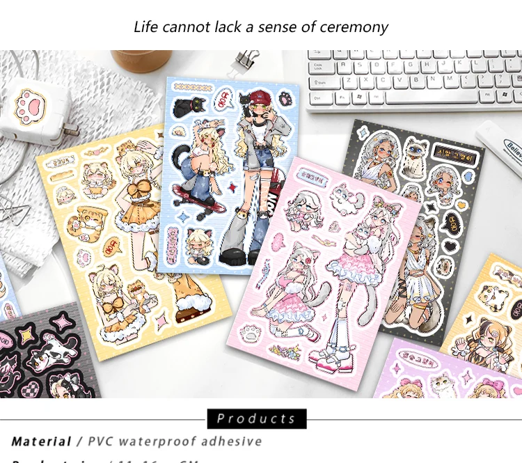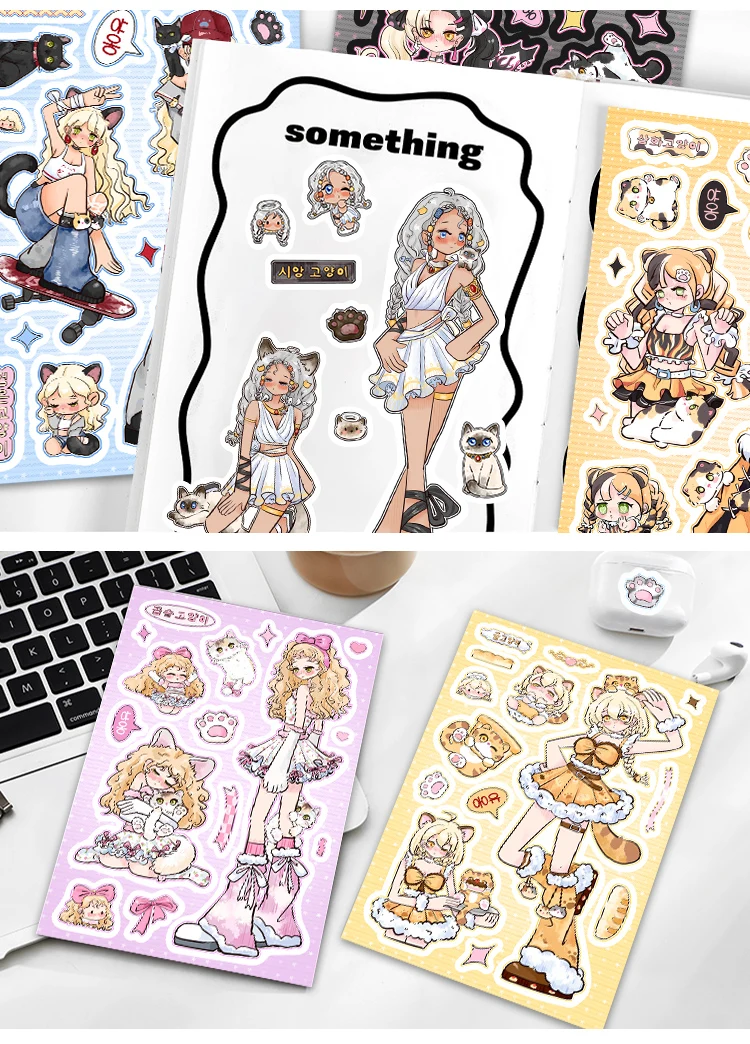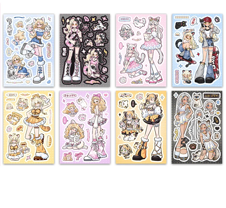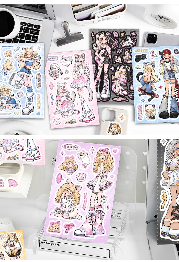 8pcs Korean Ins Wind Meow Star Guka Stickers Girl Style Cute Student Princess High Beauty Hand Book Notebook Decoration DIY