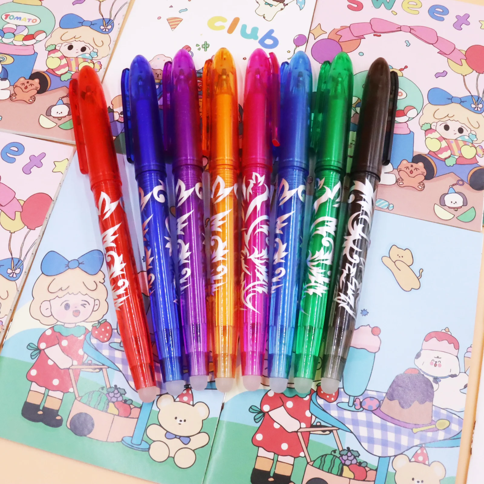 8pcs Multi-Color Erasable Gel Pen 0.5mm Tip Painting Writing Drawing School Black Blue Red Pink Orange Green Purple Light Blue