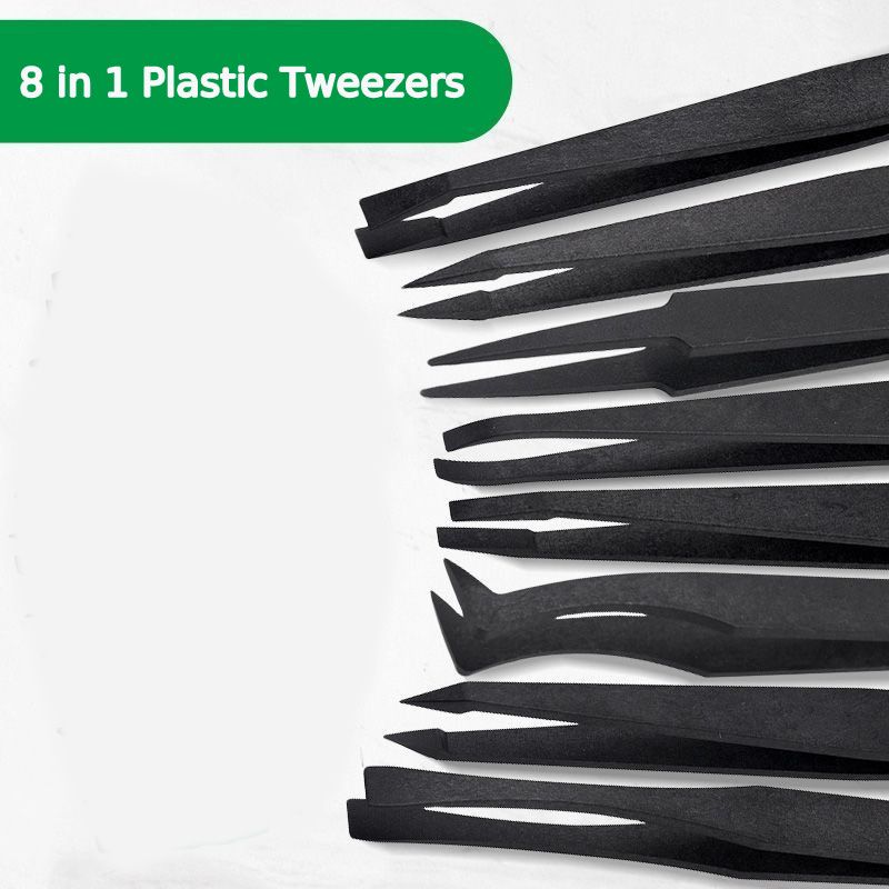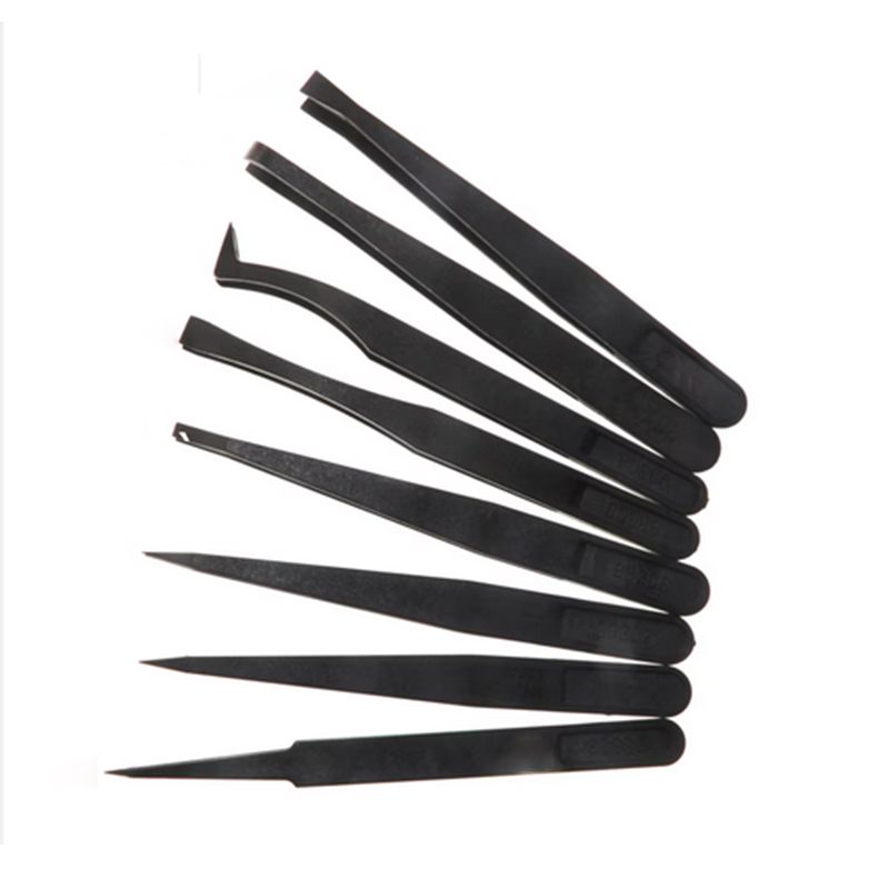 8pcs/Set Anti-Static ESD Plastic Tweezers Set Curved & Straight Forceps for Electronic PCB Repair Anti-Static Hand Tools