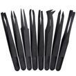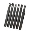The set includes both curved and straight forceps, providing versatility for different repair tasks on PCBs.