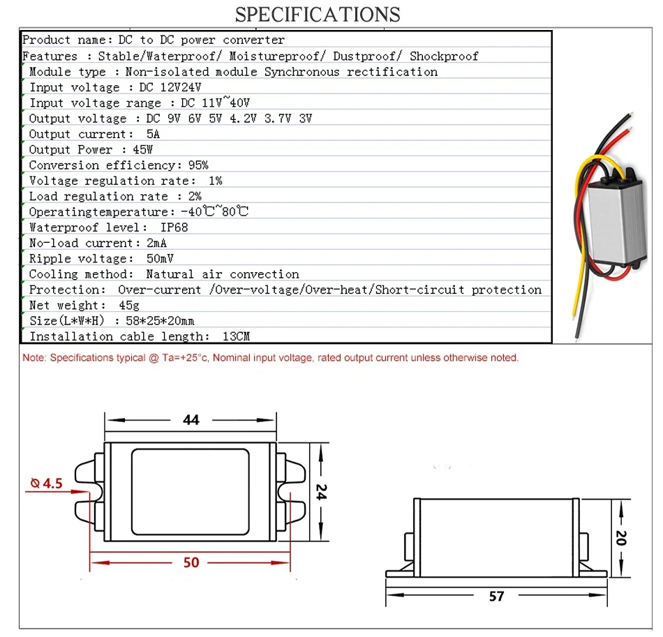 12V24V to 9V 6V 5V 4.2V 3.7V 3V 3.3V 7.5V 5A 12V to 9V 24V to 9V transformer step-down module DC DC Power Converter for Car LED