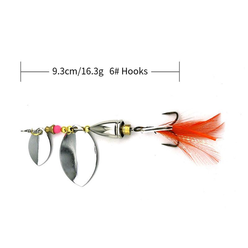 9.3cm Double Sequin Metal Spoon Lure 16.3g Spinner Fishing Lure Bass Baits Feather Hook