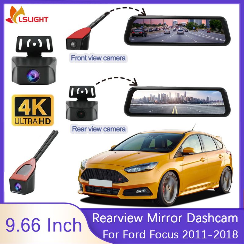 9.66 Inch Car Rear View Mirror Dashcam 4K For Ford Focus 2011-2018 Front View And Rearview Camera Monitor 1080P Auto Accessories
