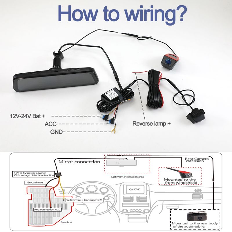 Our rearview mirrors are installed through professional wires, not connected through cigarette lighters or car chargers. The product does not have built-in lithium batteries, so there is no need to worry about the possibility of car self ignition caused by high temperature weather. It is safer and more aesthetically pleasing to use, The product supports a voltage of 9-32V and is compatible with both large and small vehicles