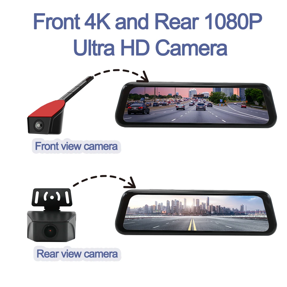 Our monitor is a 9.66-inch IPS screen with a 1920 * 480 high-definition resolution, providing you with a high-definition experience. The front and rear cameras have 4K and 1080P high-definition pixels, respectively, which are perfectly compatible with our monitor. In addition, the split camera design greatly enhances the appearance after installation