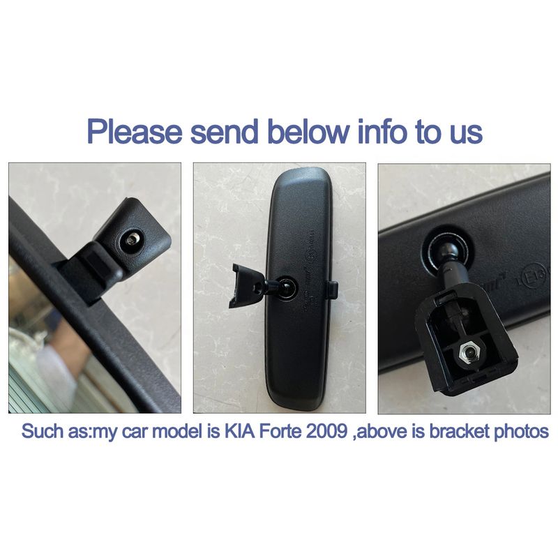Due to different car models, the bracket for the rearview mirror may vary, so our product does not come with a standard installation bracket for the rearview mirror. Buyers need to purchase it separately. When purchasing the bracket, please provide the car model and year, as well as a photo of the rearview mirror bracket base for confirmation