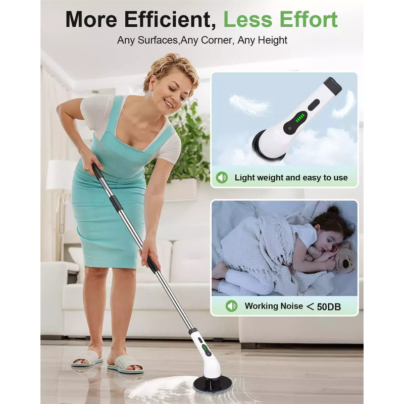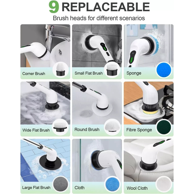 There are 9 interchangeable cleaning brush heads included with each telescopic bathroom scrubber, and the pole of each brush can be adjusted to meet your specific cleaning needs. In comparison to traditional cleaning methods, this power scrubber can easily reach hard-to-reach and uncomfortable places, making cleaning easier and more comfortable.