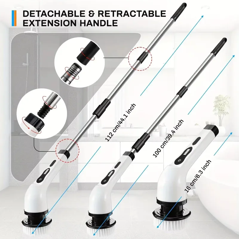 9-in-1 Wireless Rotating Electric Cleaning Brush - Household Multi-scene Scrubber for Bathroom, Kitchen & Toilet Deep Cleaning