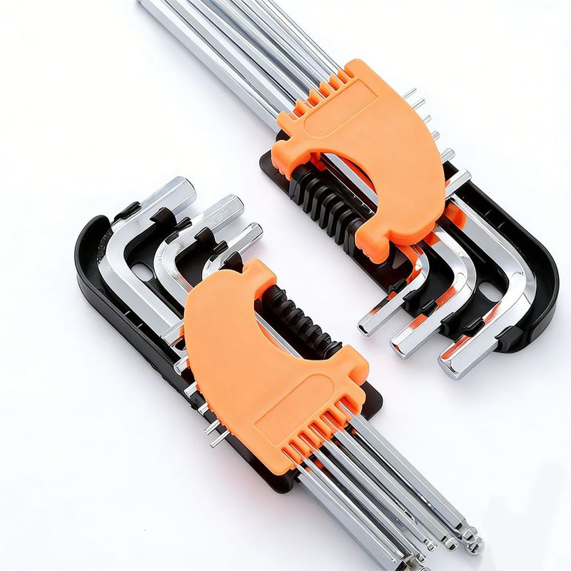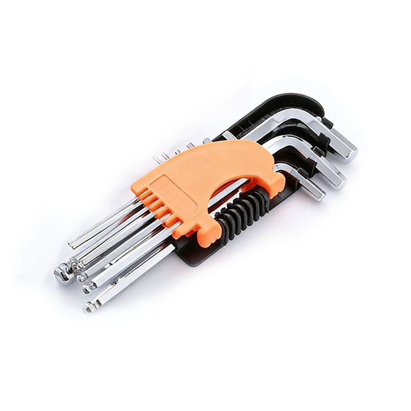 9-Piece L-Shaped Ball Head Hex Key Wrench Set Chrome Plated Allen Wrenches for Home Repair And Maintenance Tools