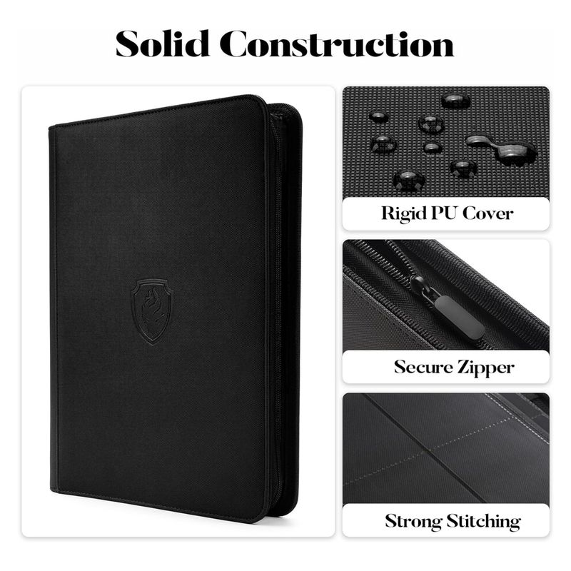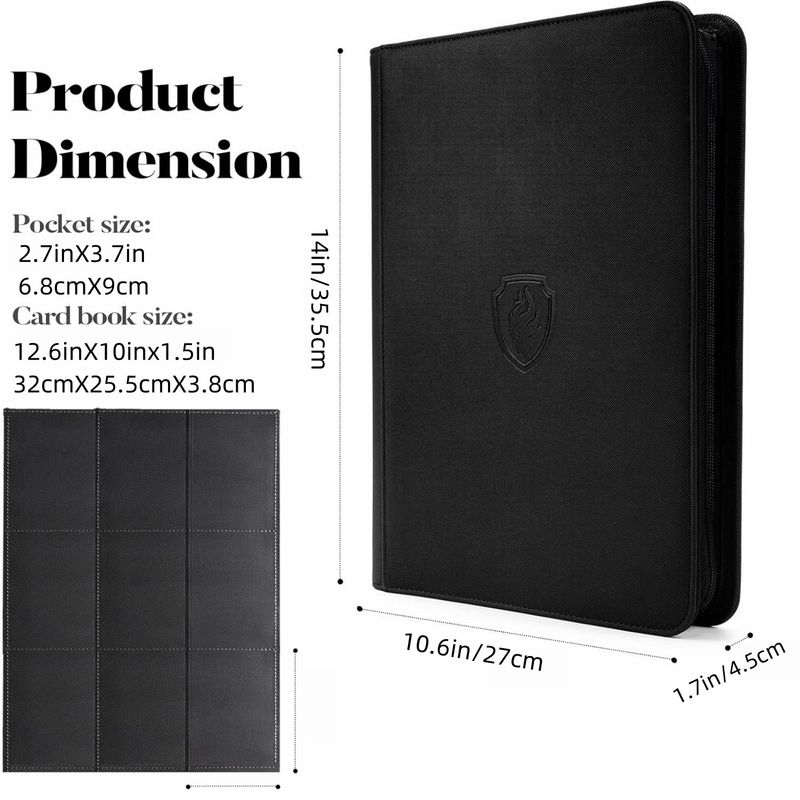 9 Pocket Zipper Card Binder, 360 Trading Card Holder Book, Premium PU Cover Zip Binder for Cards, Durable Side Loading Card