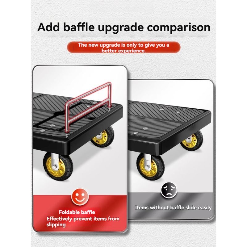 90*60CM Small Trolley Cargo Trailer Folding Lightweight Hand-held Trolley Transport Flatbed Home Delivery Trolley